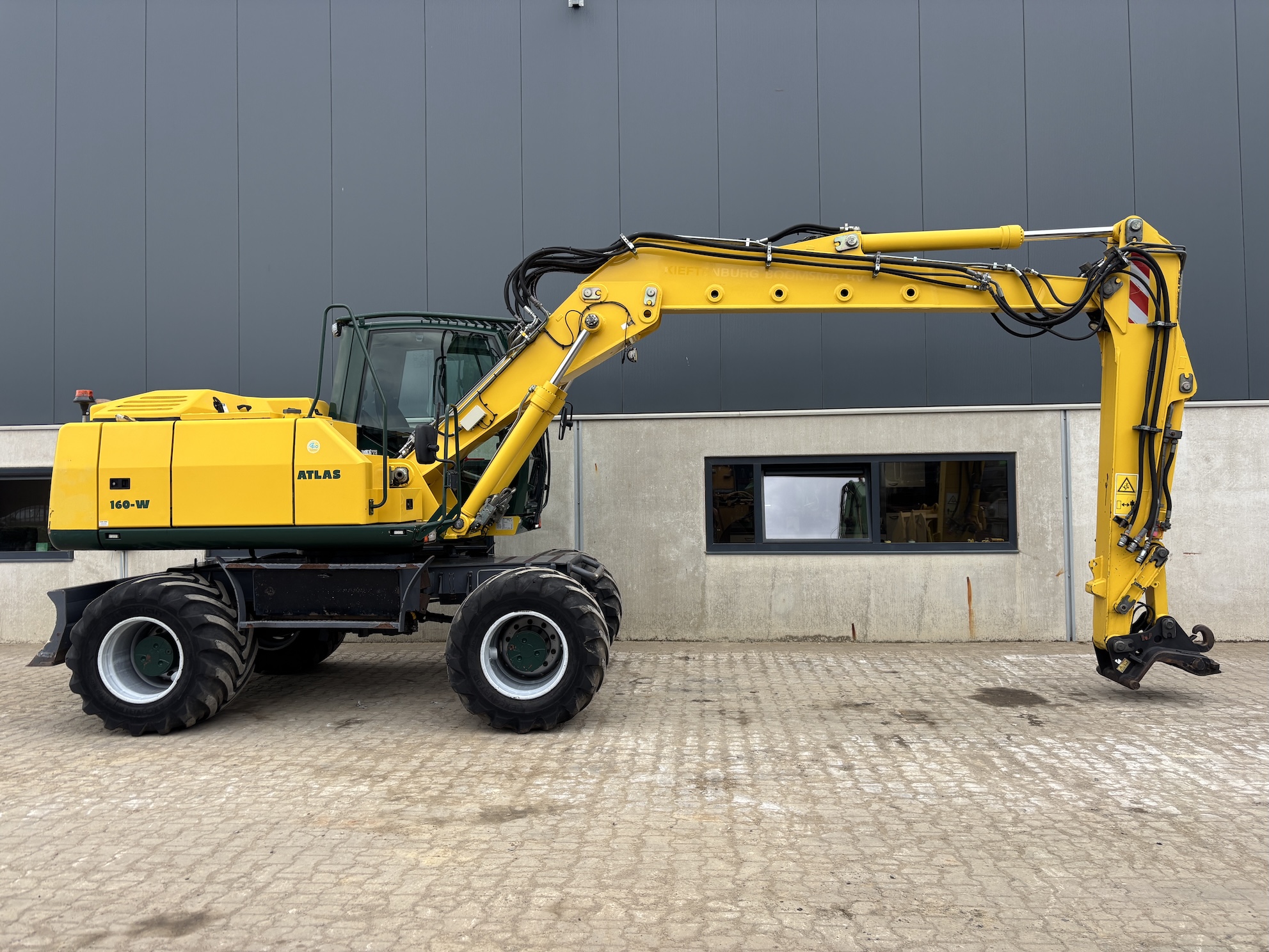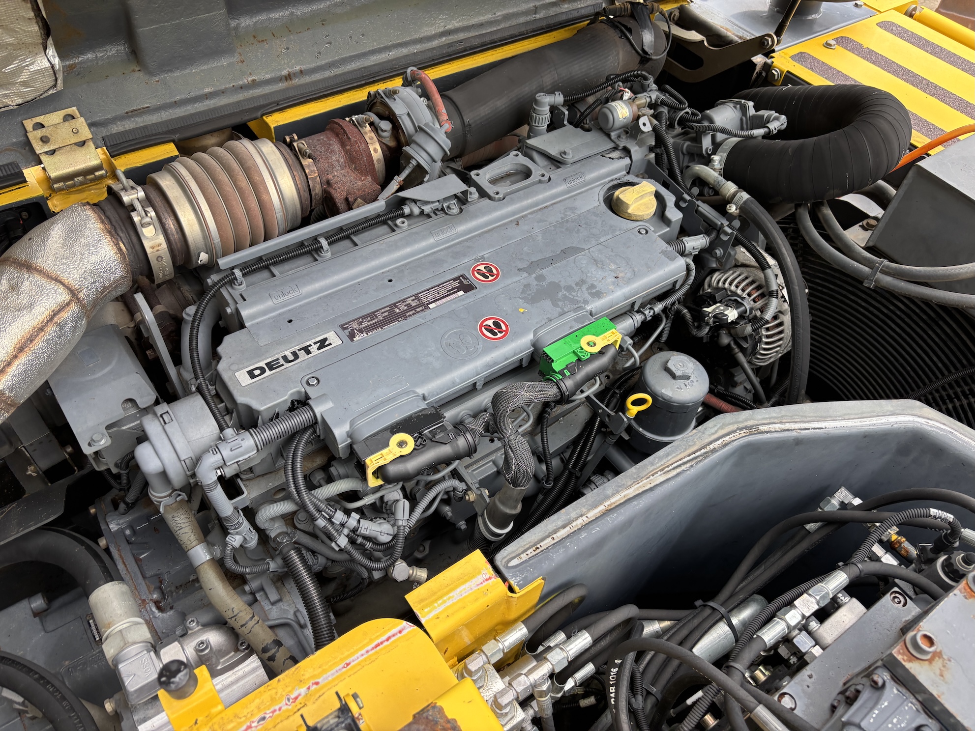 This Atlas 160W is equipped with a 4 cilinder water cooled turbo charged Deutz TCD 6.1 L6 (105kW) diesel engine. Total engine hours are 9759 but only 3500 hydraulic working hours! Very good Nokian single air tires, mechanical adjustable boom, all hydraulic options for attachments, CW20 hydraulic quick hitch, excellent paintwork, dozer blade (barely used), electric diesel pump, extra work lights, rear camera, radio, airco, etc..