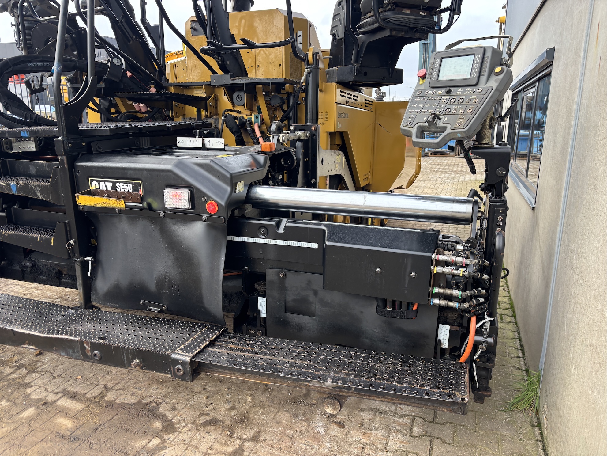 This CAT AP500F paver is equipped with a 4 cilinder turbo charged water cooled CAT C4.4 Acert (106kW) diesel engine with 1756 working hours on the service meter. Hard top canopy, levelling devices, additional work lights, 4 control panels, conveyor belt, intergrated CAT grade control, trailing edge screed plate adjusters, quick change heating elements, free floating tow point, generator activation, temperature selection unit, temperature zone monitoring, spring loaded end gates, screed controls etc…