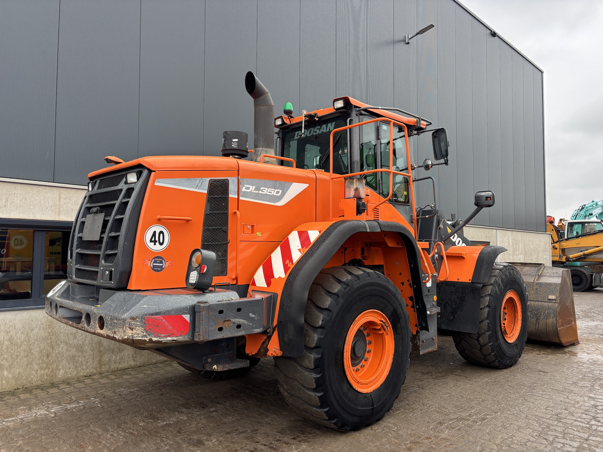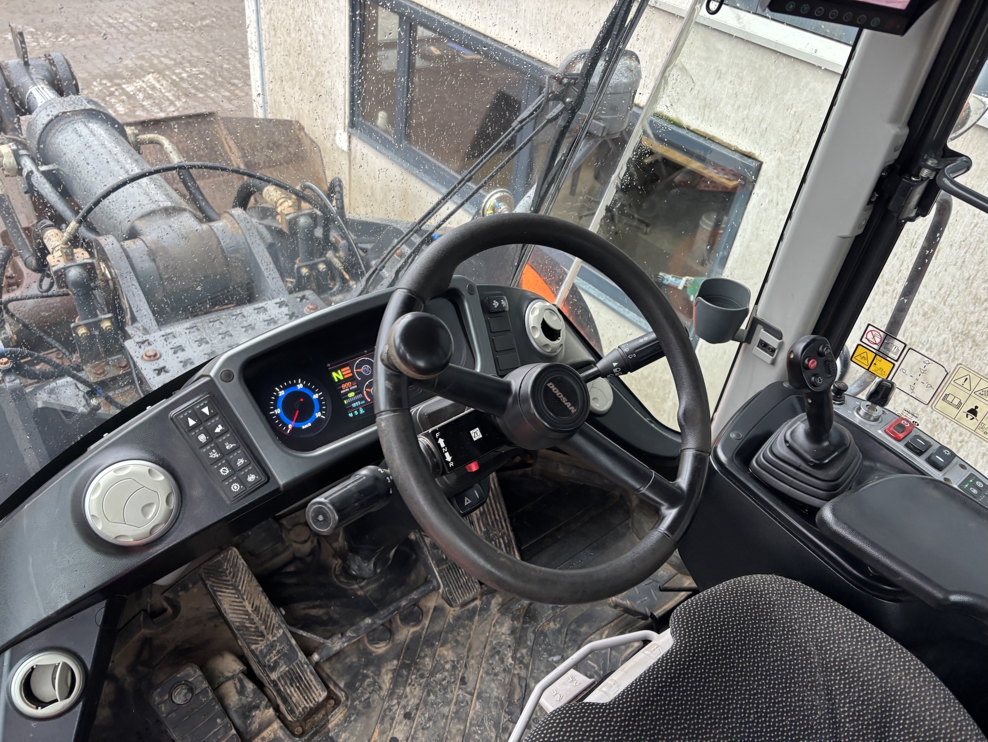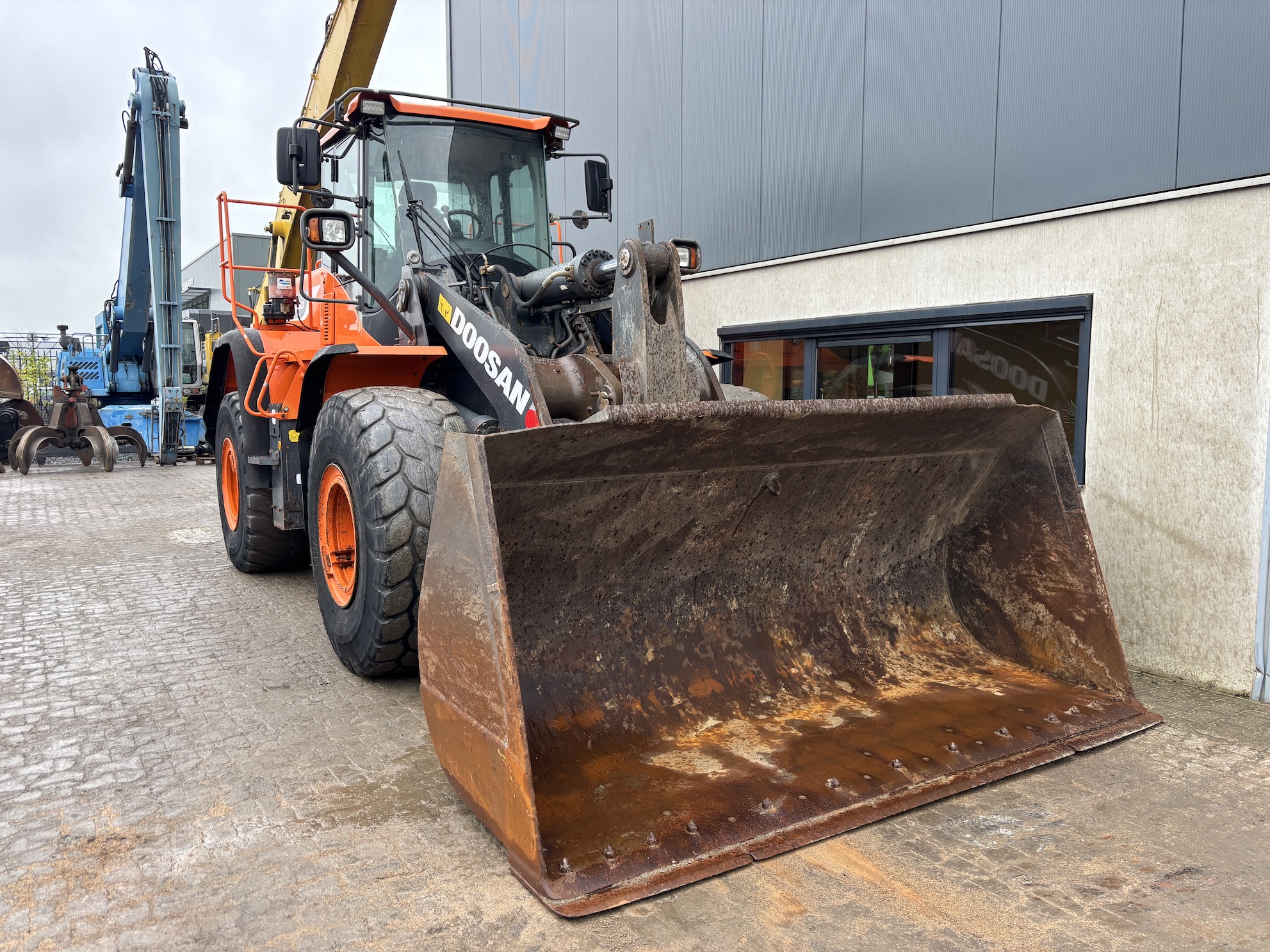 This Doosan DL350-5 wheel loader is equipped with a 6 cilinder water cooled turbo charged Doosan DL08-MEL01 diesel engine (202kW) with just 7284 working hours on the service meter. 3.7m3 Doosan bulk bucket, central lubrication, extra work lights, rear view camera, airco, radio etc.
