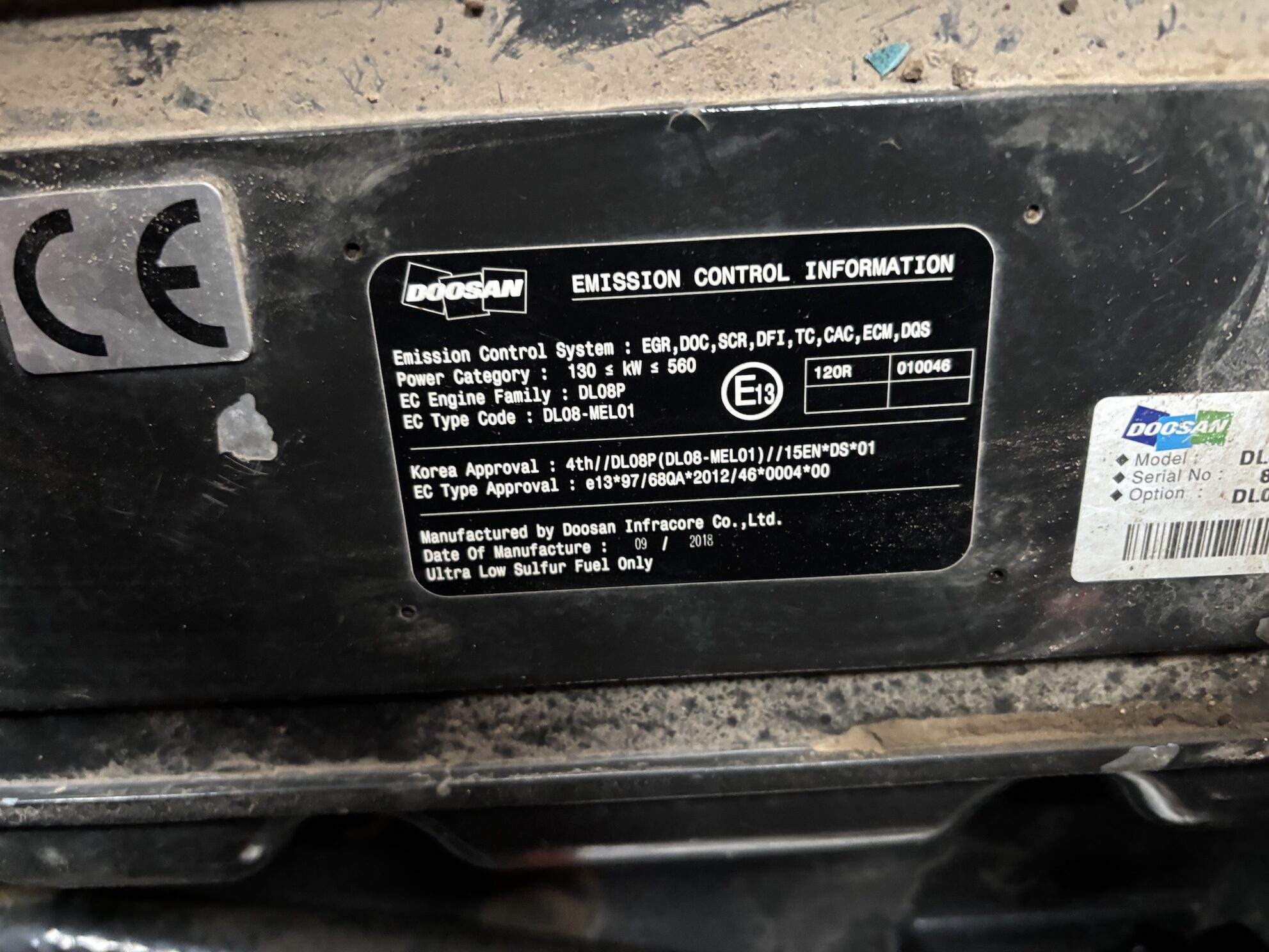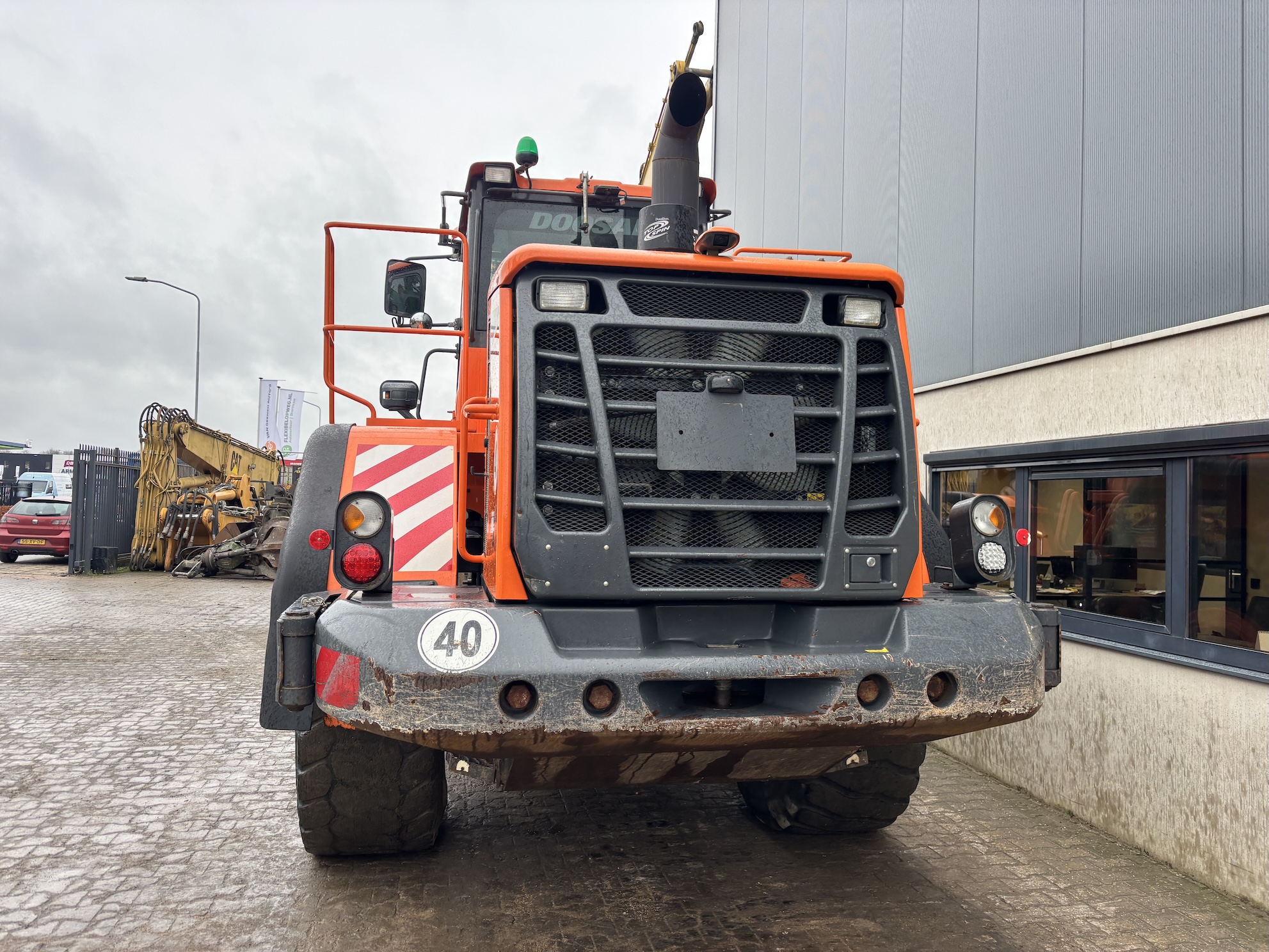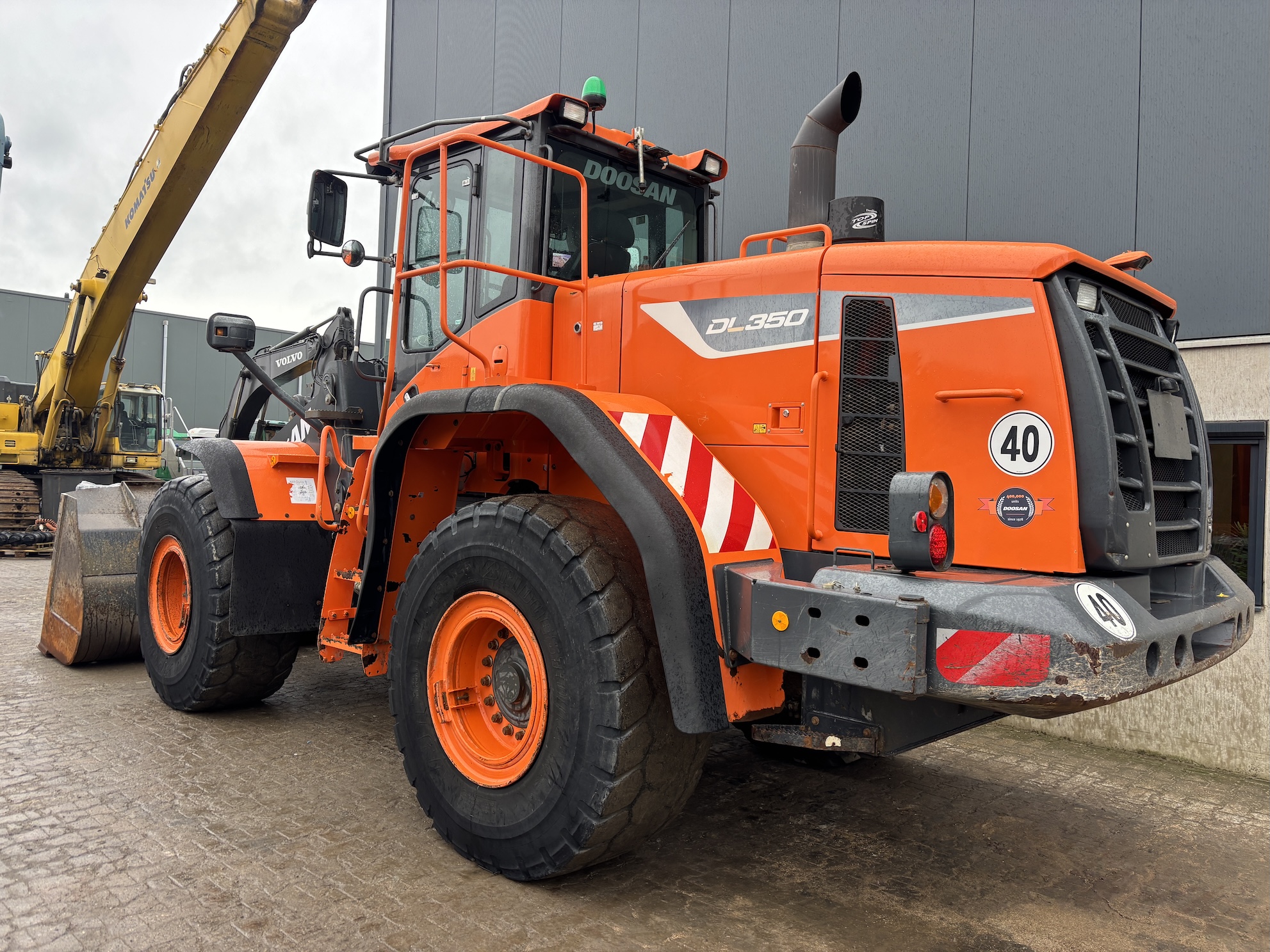 This Doosan DL350-5 wheel loader is equipped with a 6 cilinder water cooled turbo charged Doosan DL08-MEL01 diesel engine (202kW) with just 7284 working hours on the service meter. 3.7m3 Doosan bulk bucket, central lubrication, extra work lights, rear view camera, airco, radio etc.