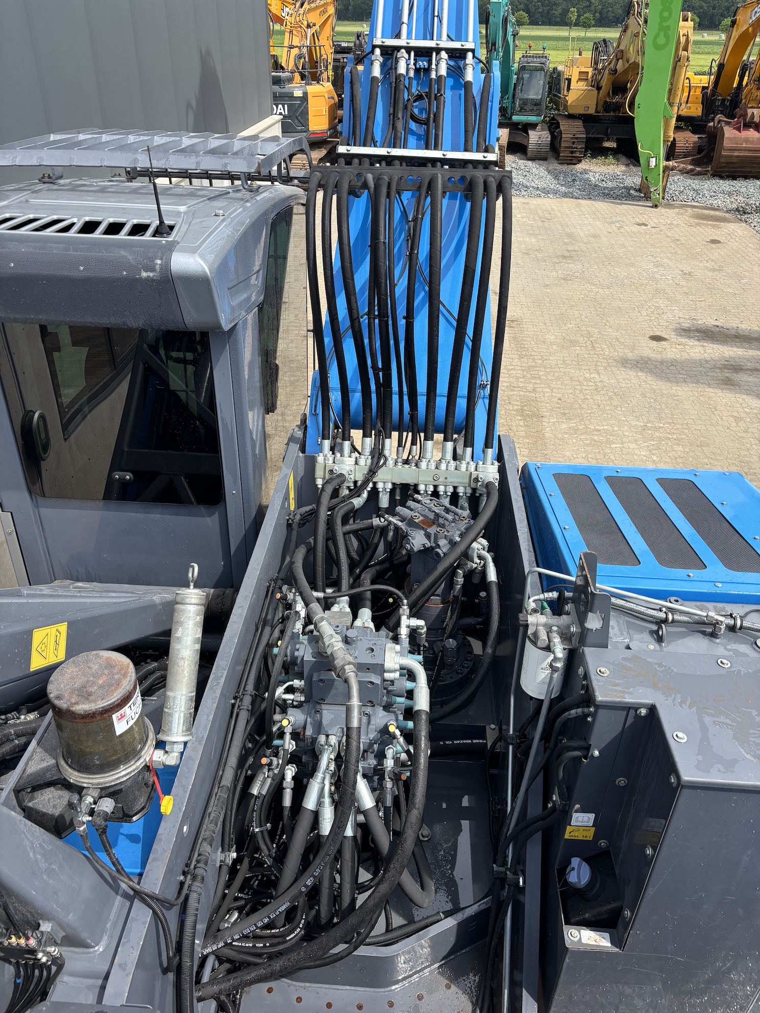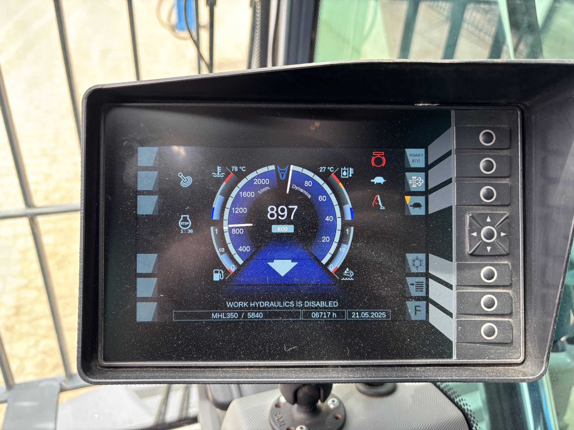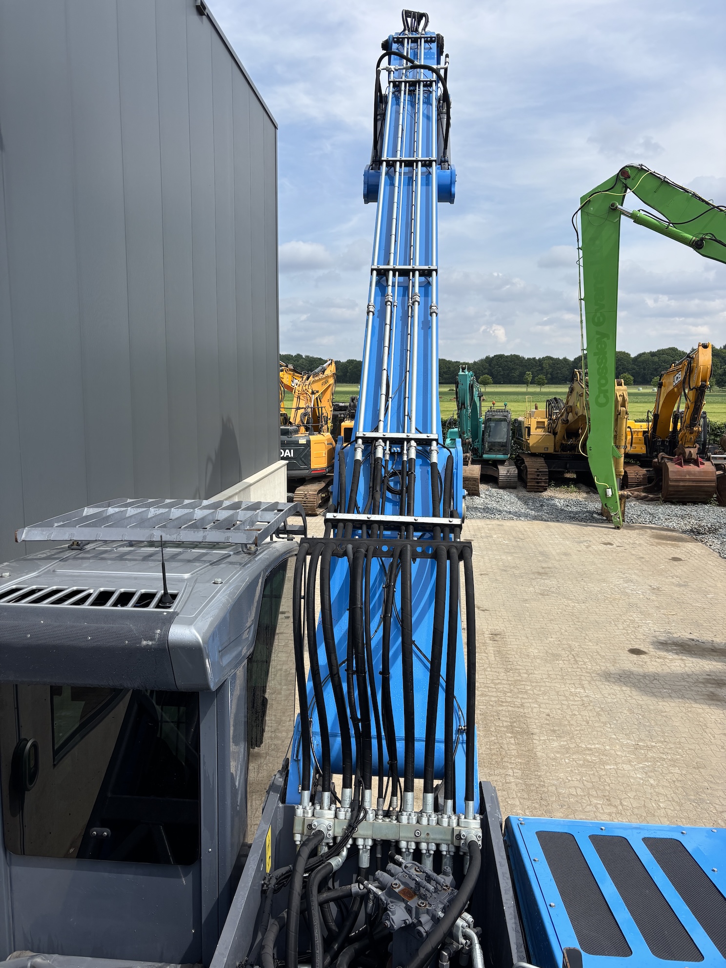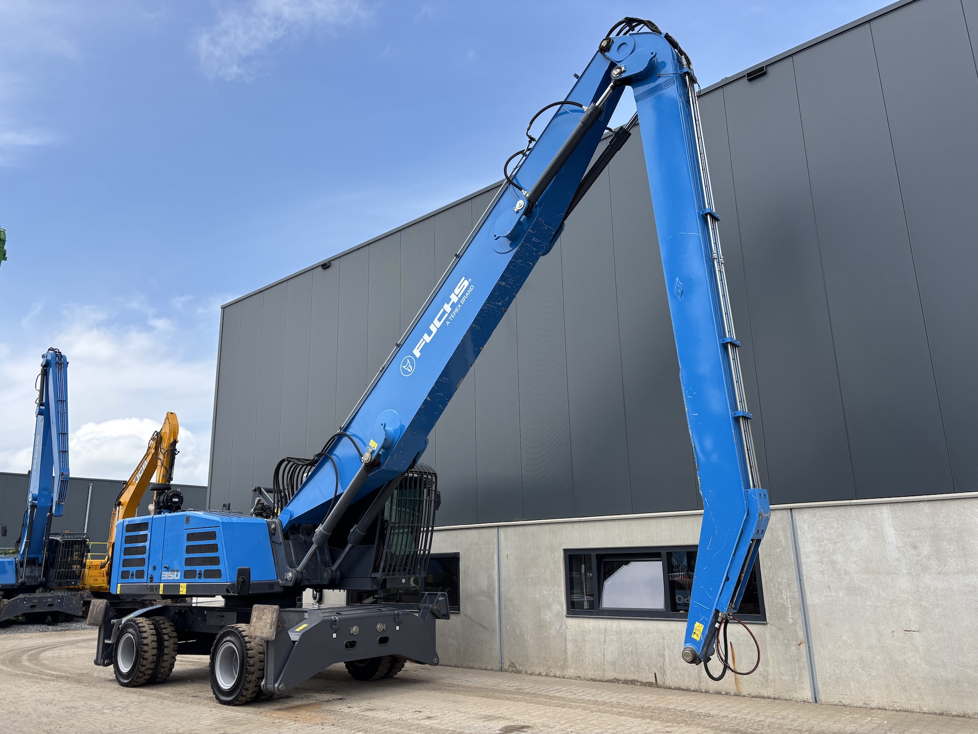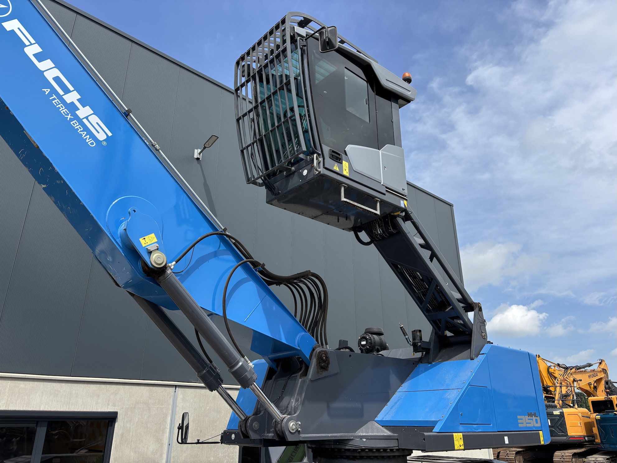 This Fuchs MHL350F is equipped with a 6 cilinder turbo charged water cooled Deutz TCD6.1 diesel engine (160kW) and is build in 2021. Machine has 6717 working hours on the service meter and a 8.5 meter boom + 7.2 meter stick which results in 16.1 meter reach. 4 outriggers, central lubrication, cabin protection, high rise cabin, side and rear view camera, full rubber tires, airco, radio, cabin steps etc. Fuchs grab optional.