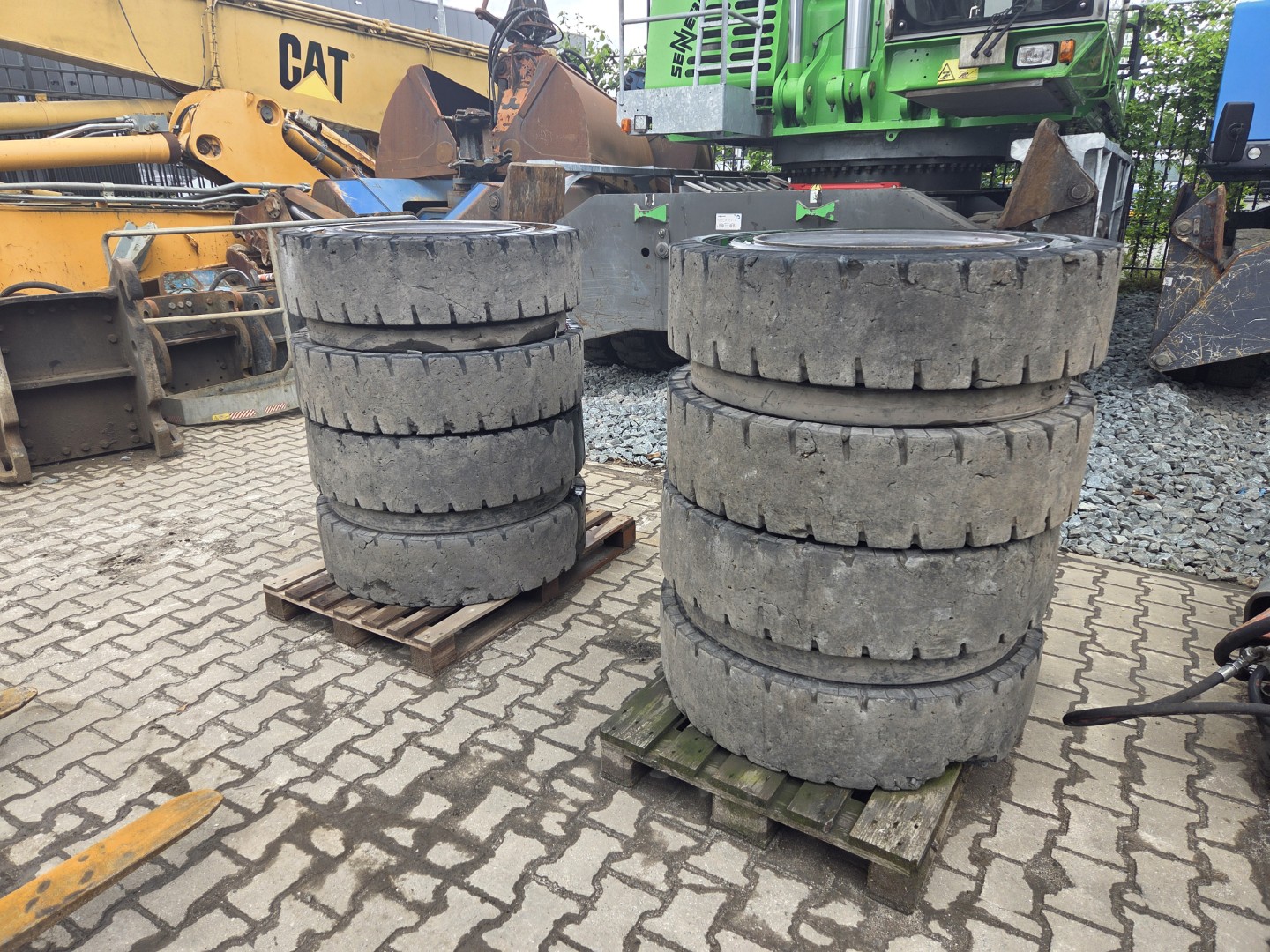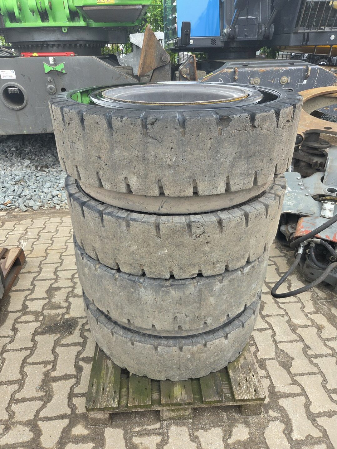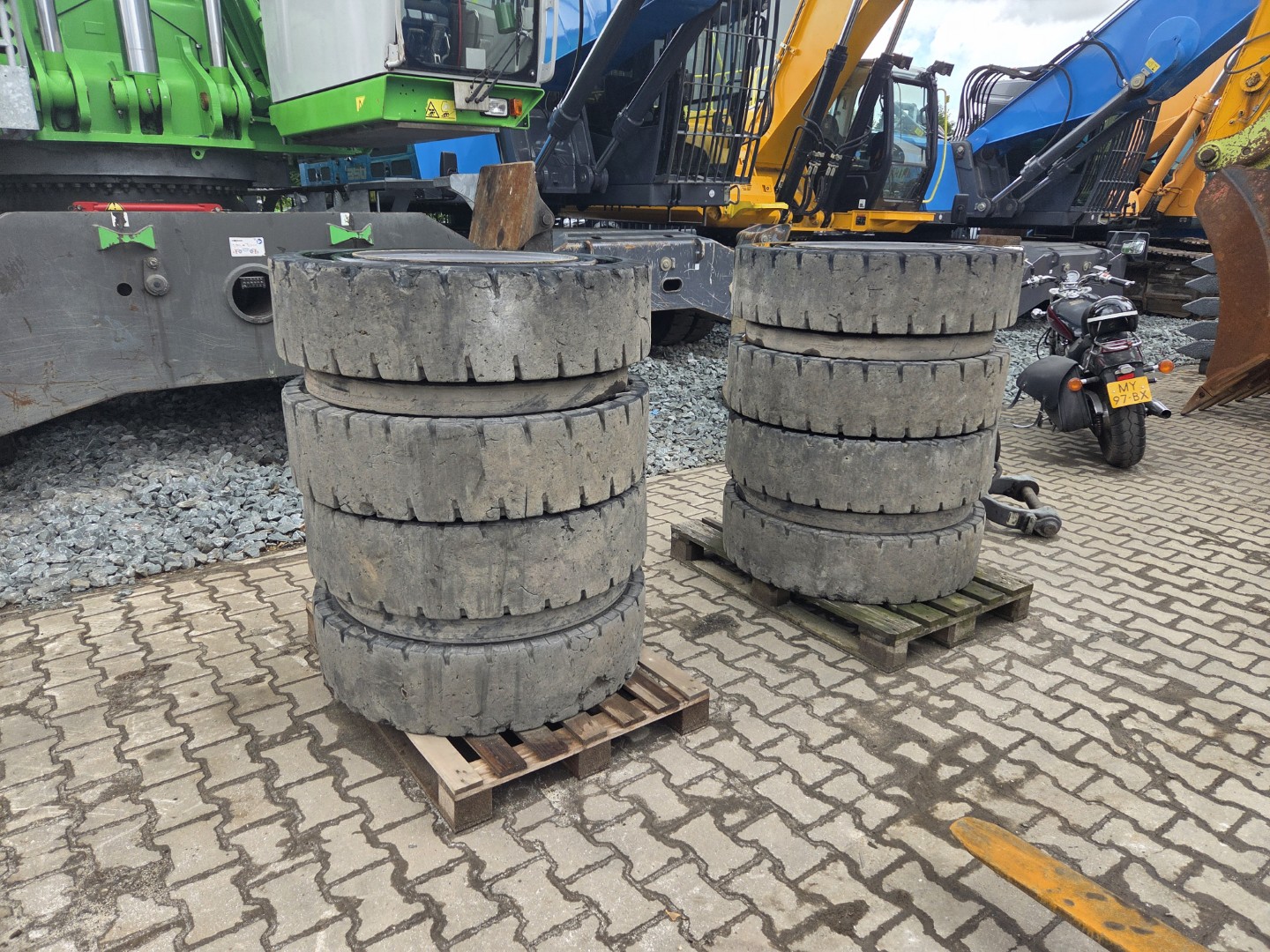 1 set – 8 pcs full rubber tyres including rims 10 hole rims