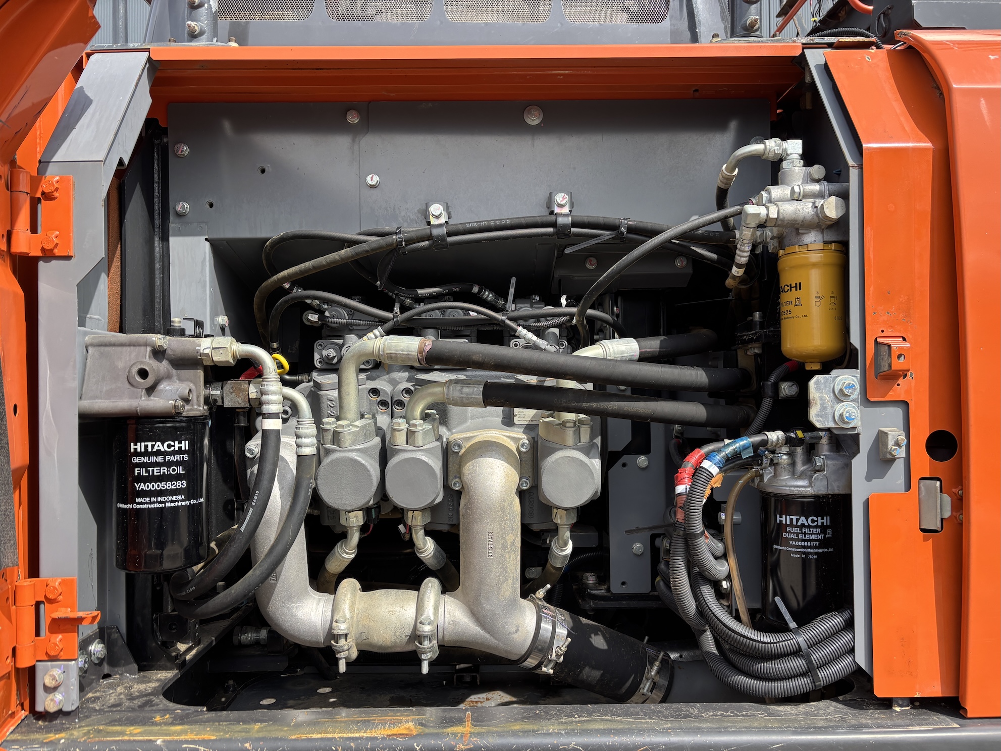 This Hitachi ZX210LC-6 track excavator is equipped with a 4 cilinder water cooled turbo charged Isuzu 4HK1 (124kW) diesel engine. More over, machine has hydraulics for hammer function, hydraulic quick hitch, grading bucket, extra work lights, top side guards, all-around camera system, airco, radio etc.