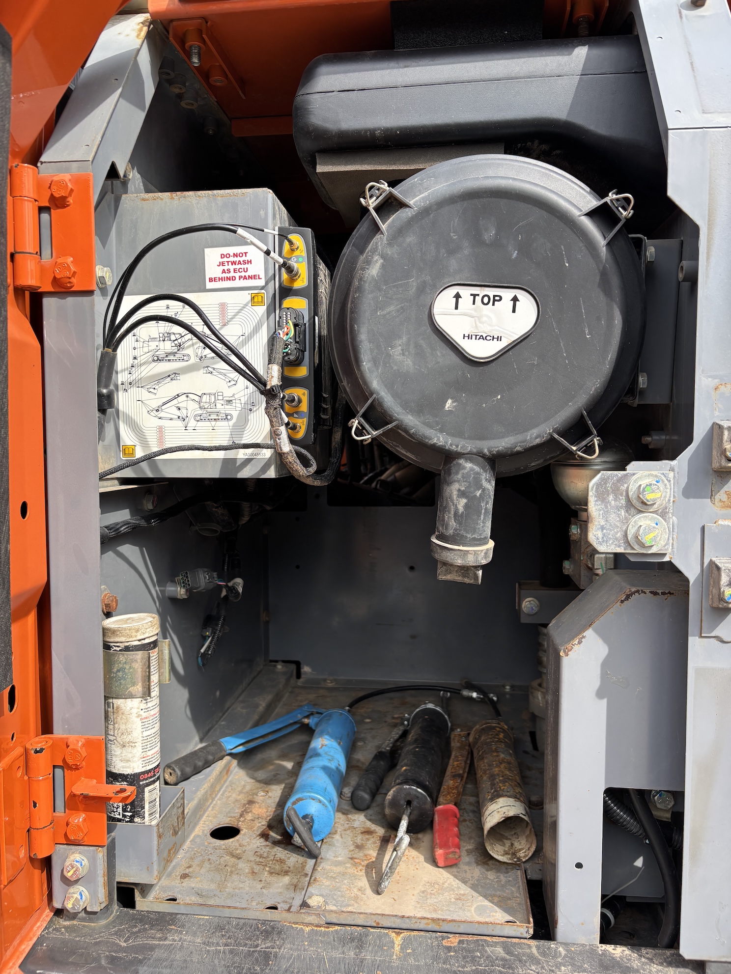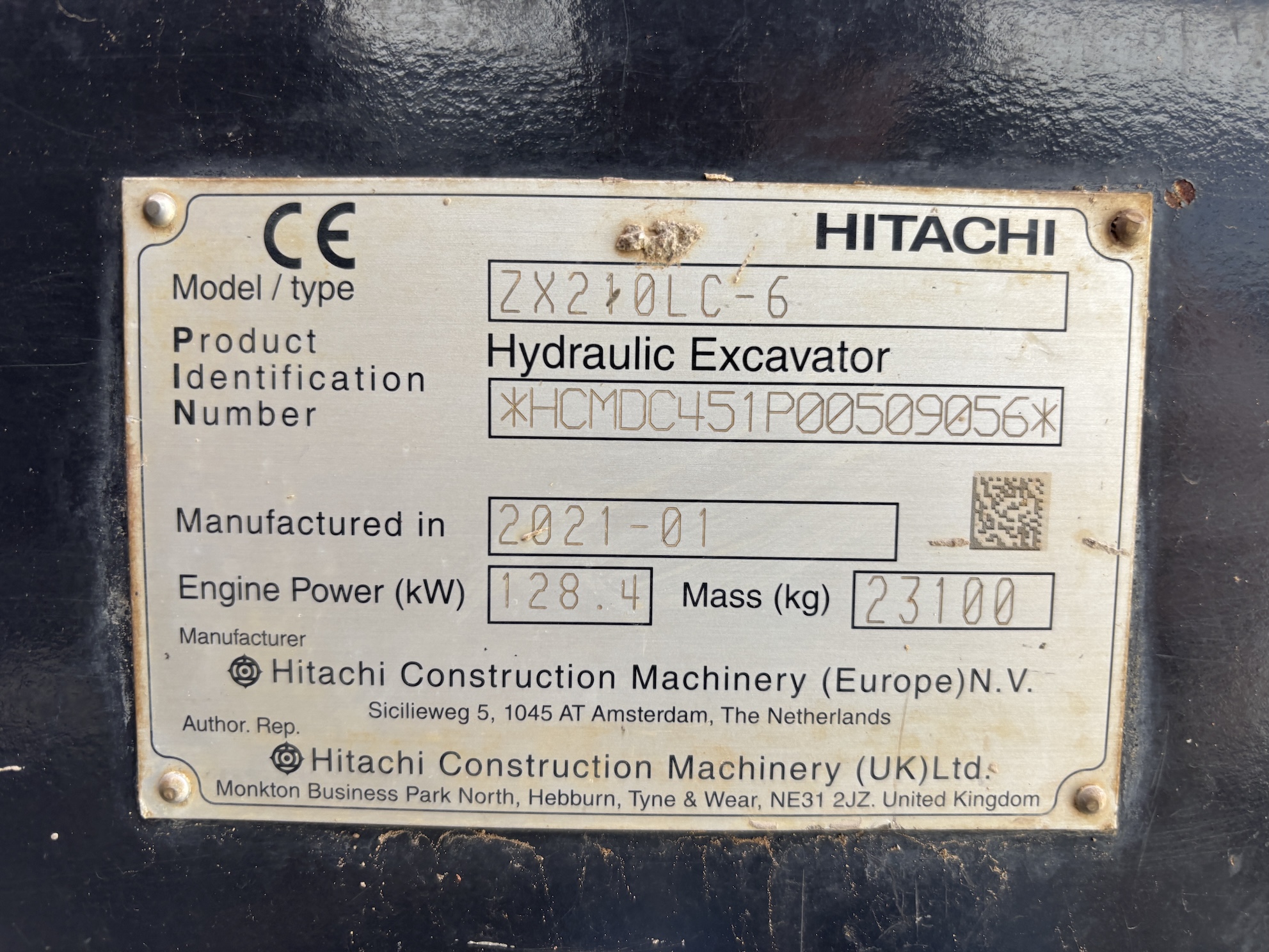 This Hitachi ZX210LC-6 track excavator is equipped with a 4 cilinder water cooled turbo charged Isuzu 4HK1 (124kW) diesel engine. More over, machine has hydraulics for hammer function, hydraulic quick hitch, teeth bucket, extra work lights, top side guards, all-around camera system, prepared for GPS, airco, radio etc.
