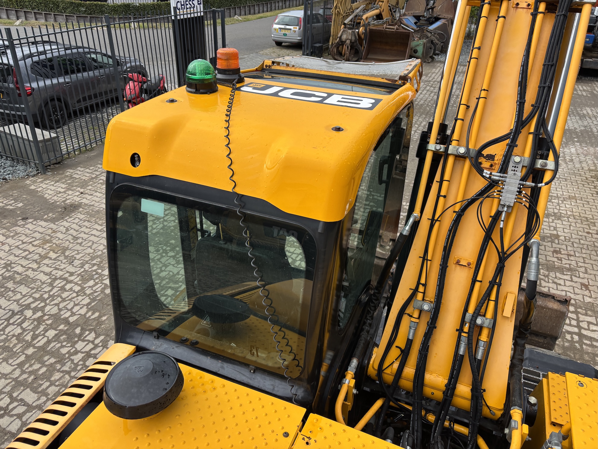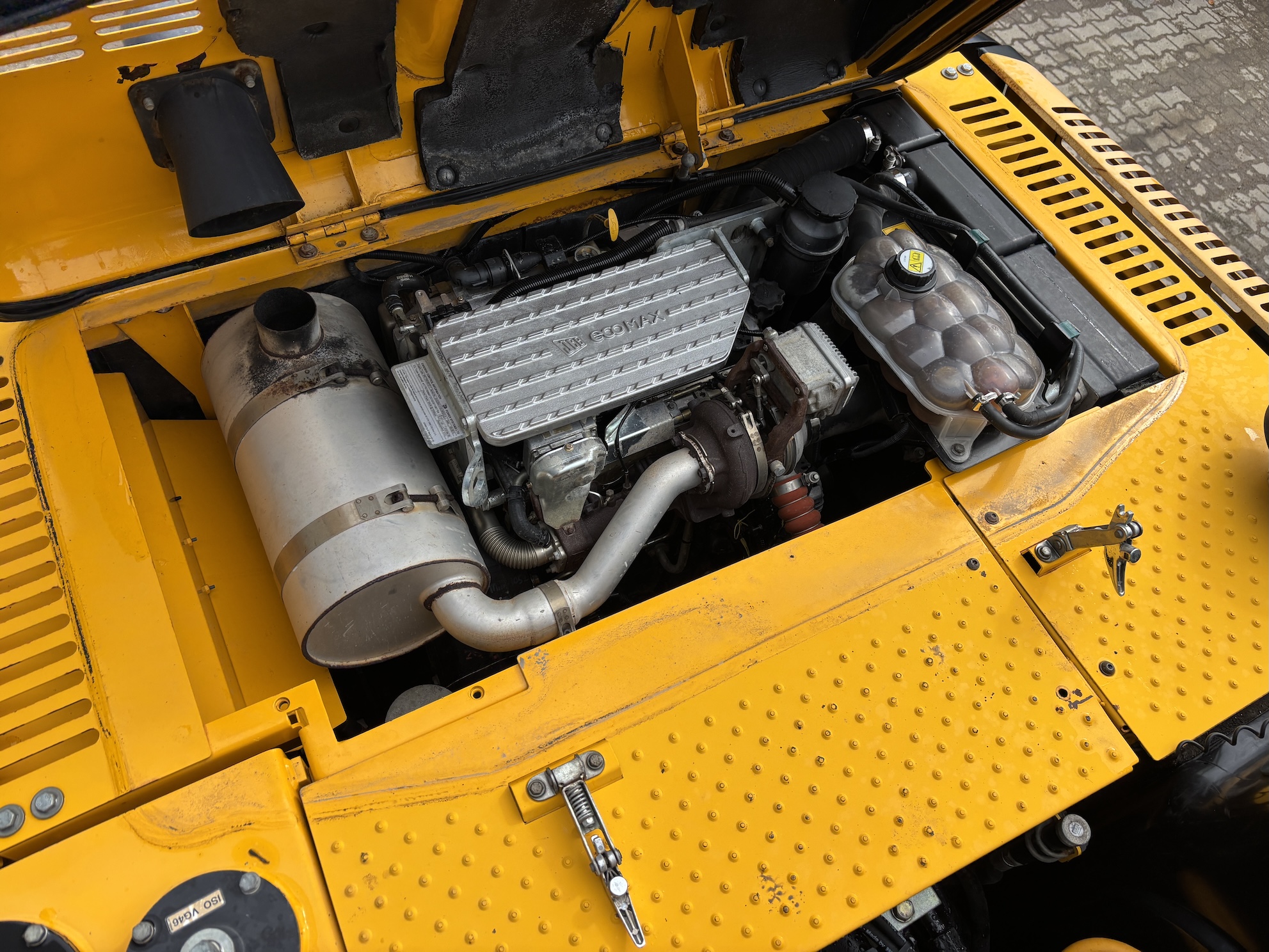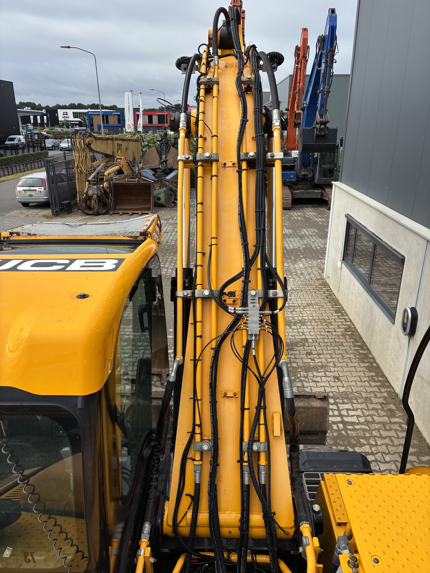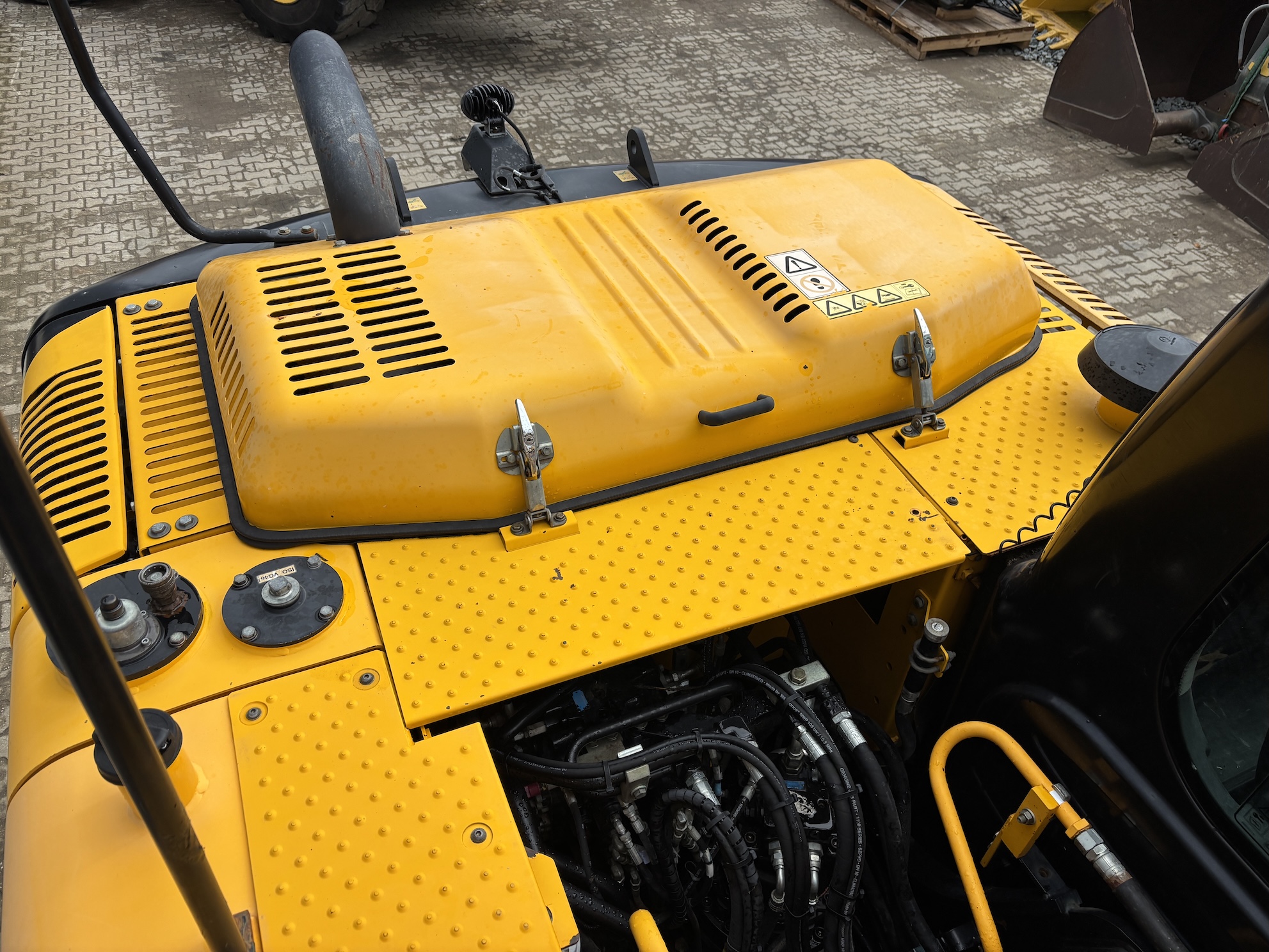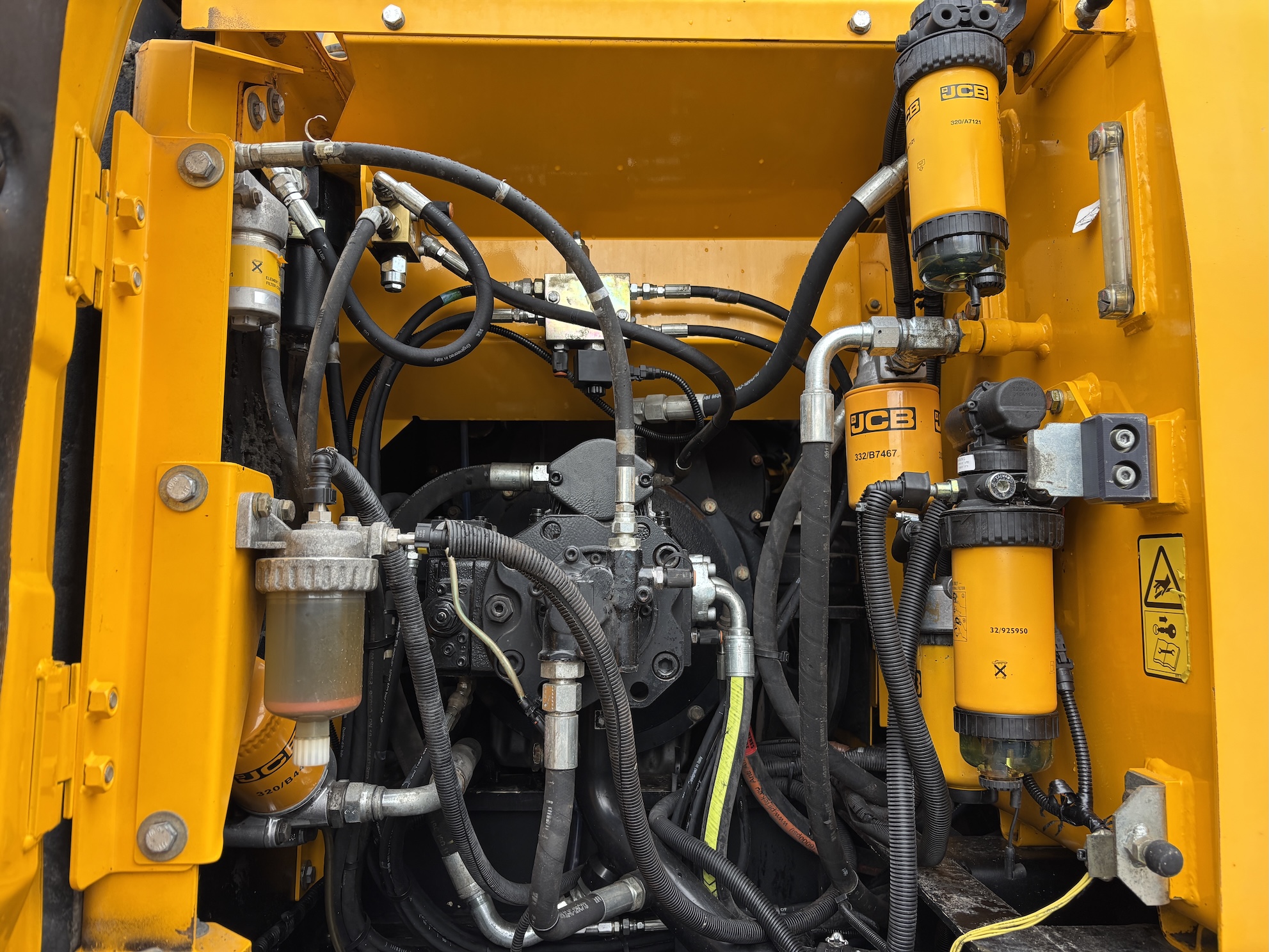 This JCB JS160W is equipped with a 4 cilinder turbo charged JCB ECOMAX 444 TA4i-93 E (93kW) diesel engine with 7327 hours on the service meter. Machine has a hydraulic dozer blade, 2 outriggers, monoboom, hydraulic quick hitch, digging bucket, hydraulics for hammer, check valves, extra work lights, rear view camera, airco, radio etc.