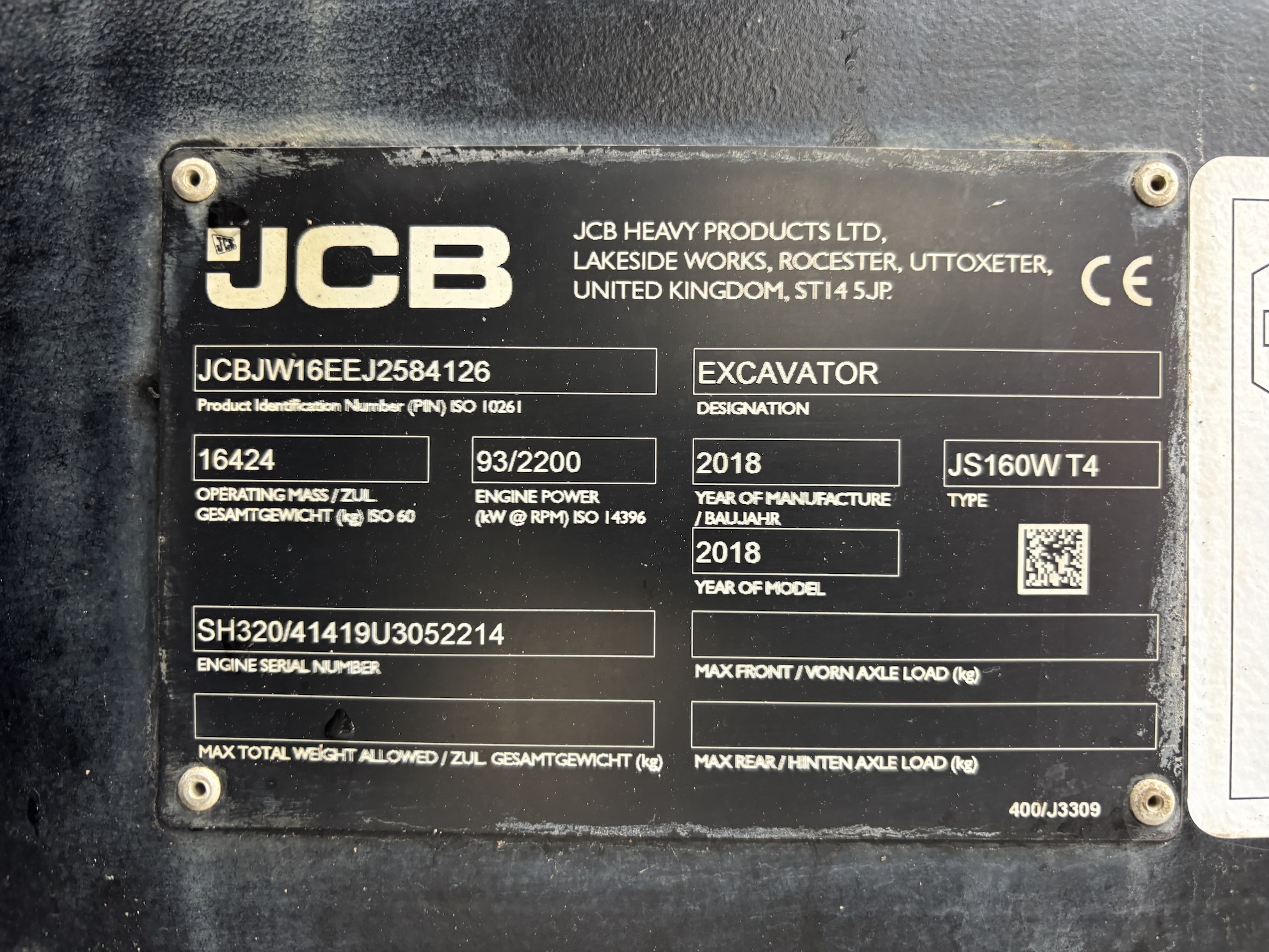 Used JCB JS160W wheeled excavator for sale at CHESS