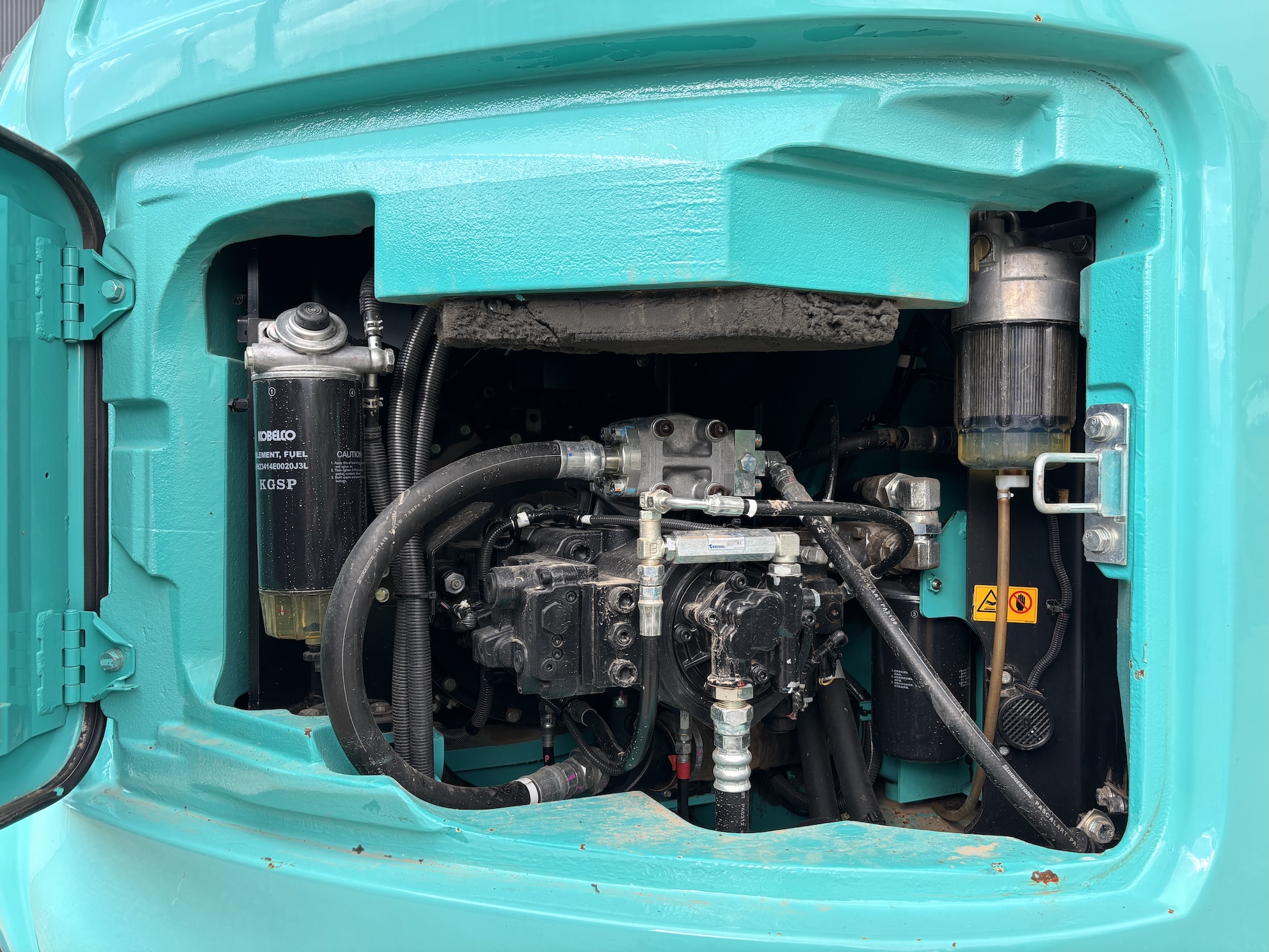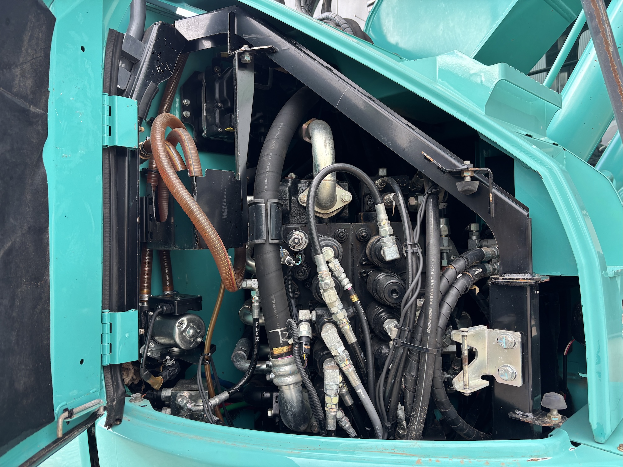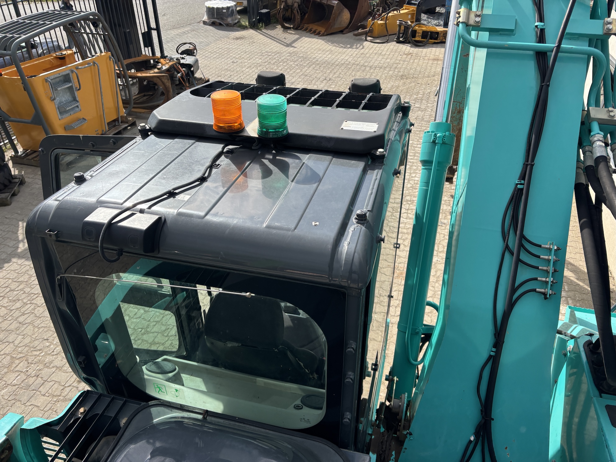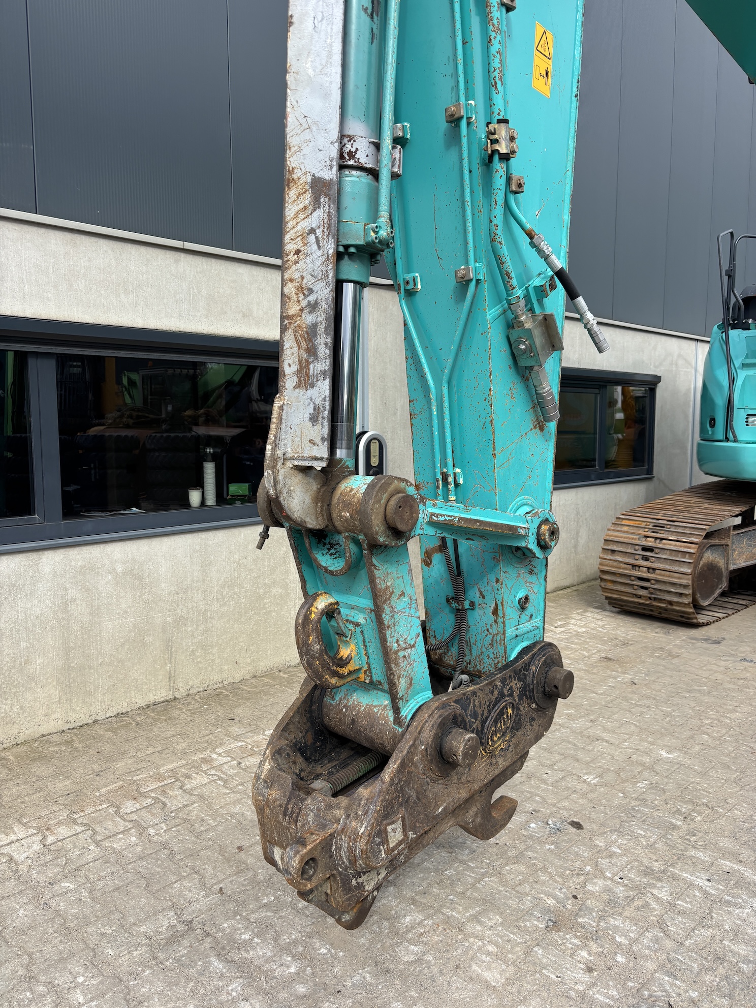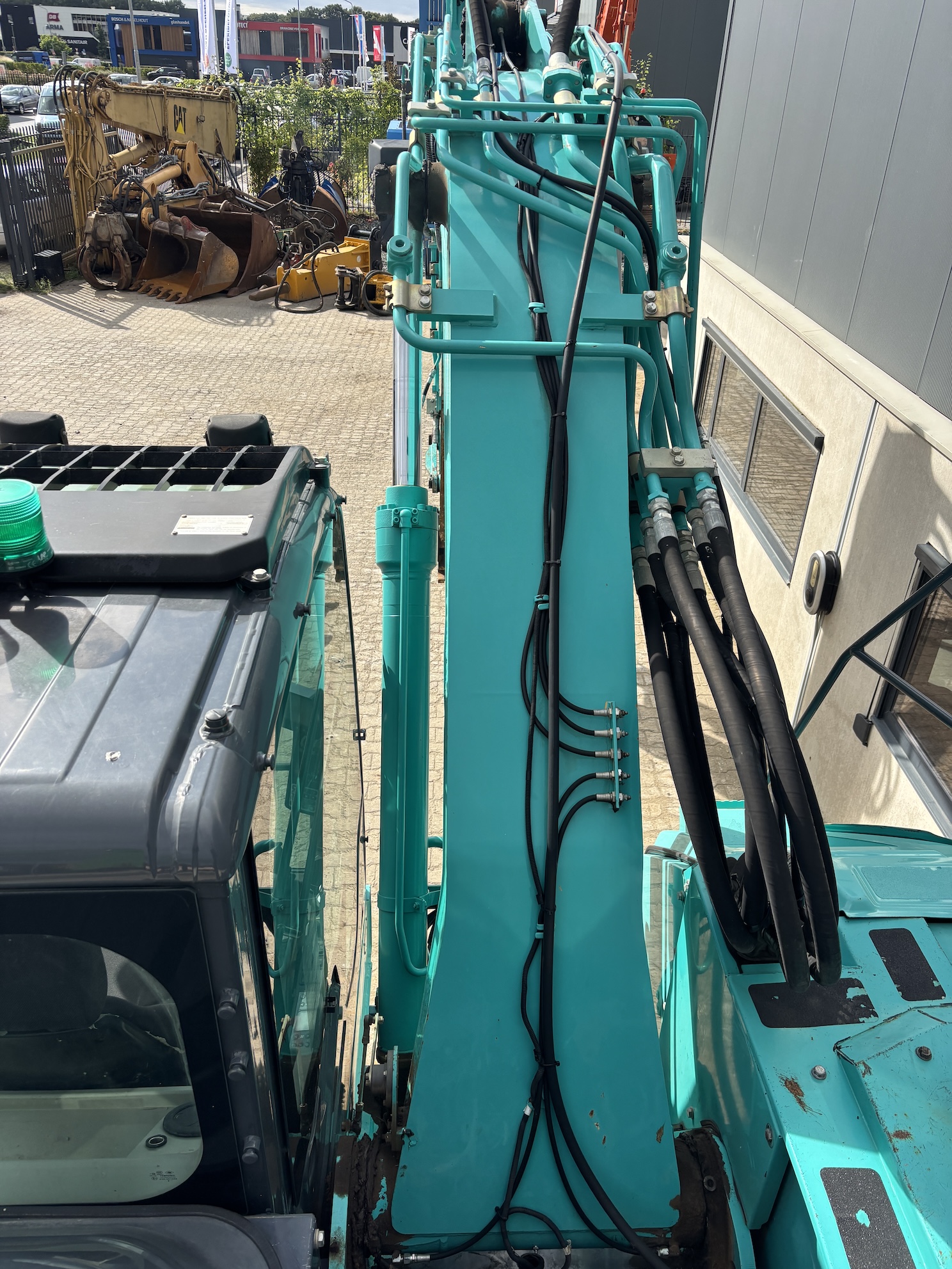 This Kobelco SK230SRLC-5 is equipped with a 4 cilinder Hino AA-J05E-UM diesel engine (124kW) with 8070 working hours on the service meter. Piped for rotation hydraulics, hammer hydraulics, hydraulic quick hitch, check valves, cilinder guard, additional work lights, rear and side view camera, airco, electric diesel pump etc..