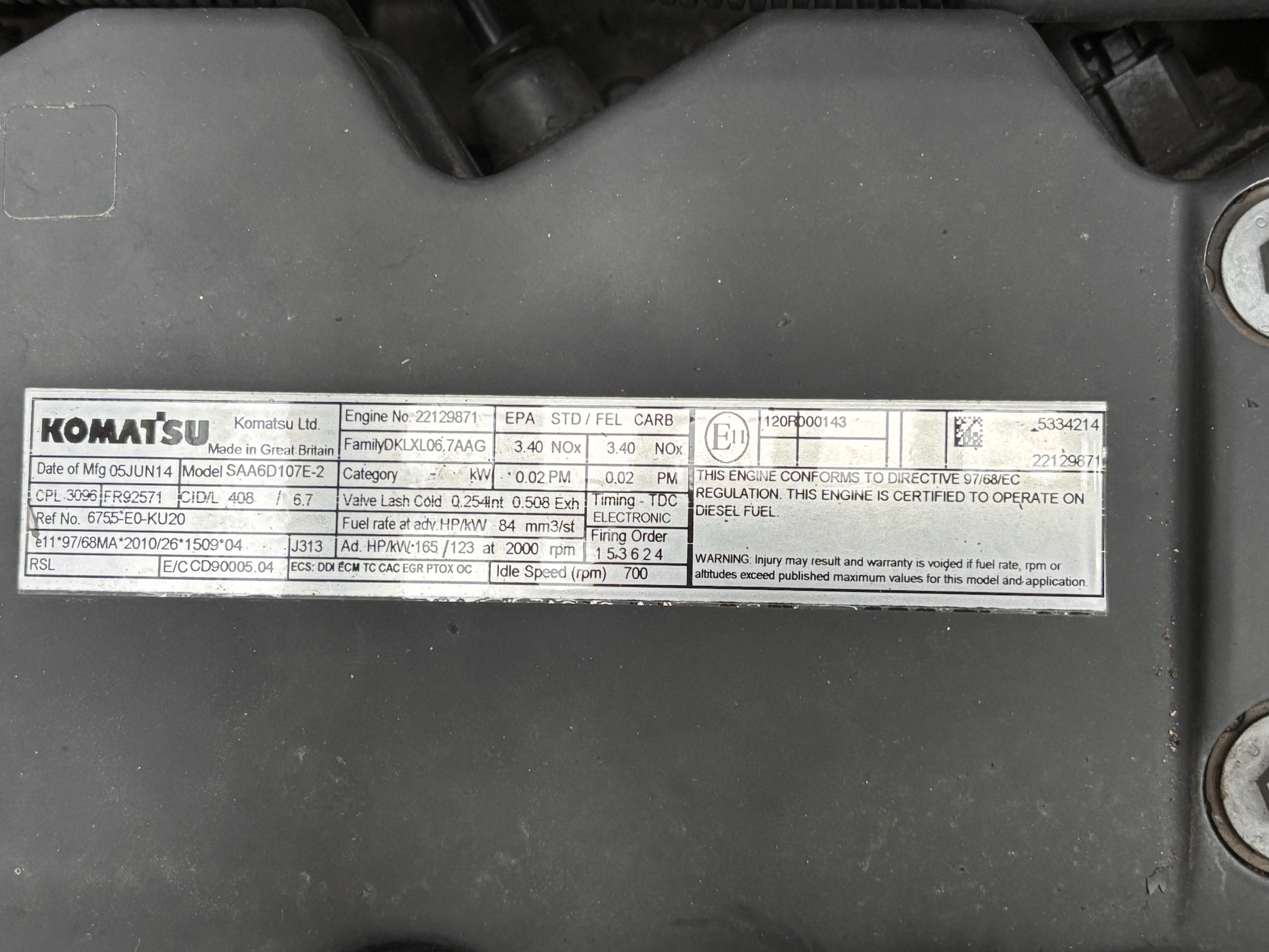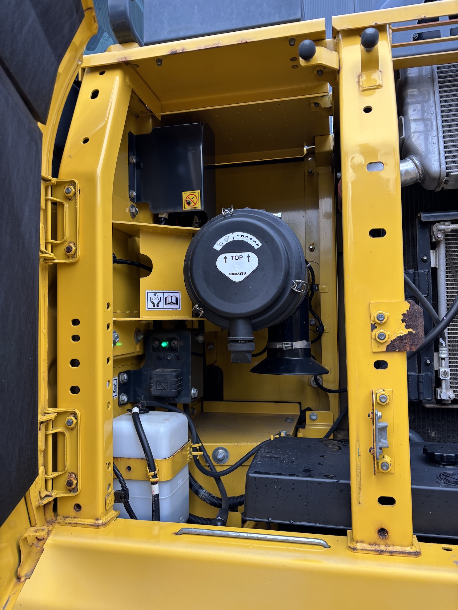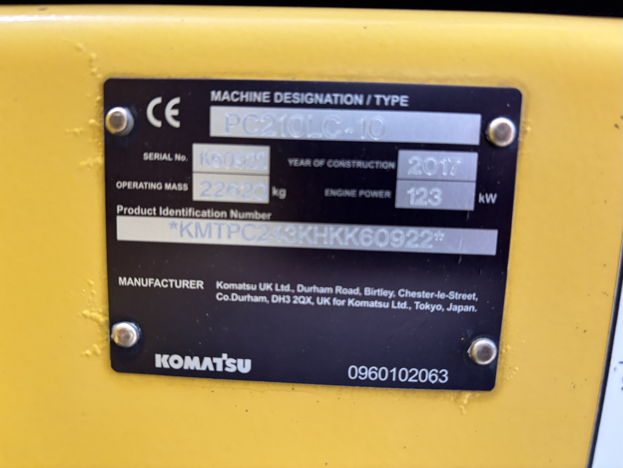 This used Komatsu PC210LC-10 is 8 years old but almost like NEW! It has always worked in an entertainment park carrying people. It has done no excavation work. The 6 cilinder water cooled turbo charged Komatsu SAA6D107E-2 diesel engine (123kW) has 4934 working hours on the service meter. Machine is equipped with hydraulics for rotation and hammer function, rear and side view camera, parts manual, electric diesel pump, NEW undercarriage, radio, airco etc..