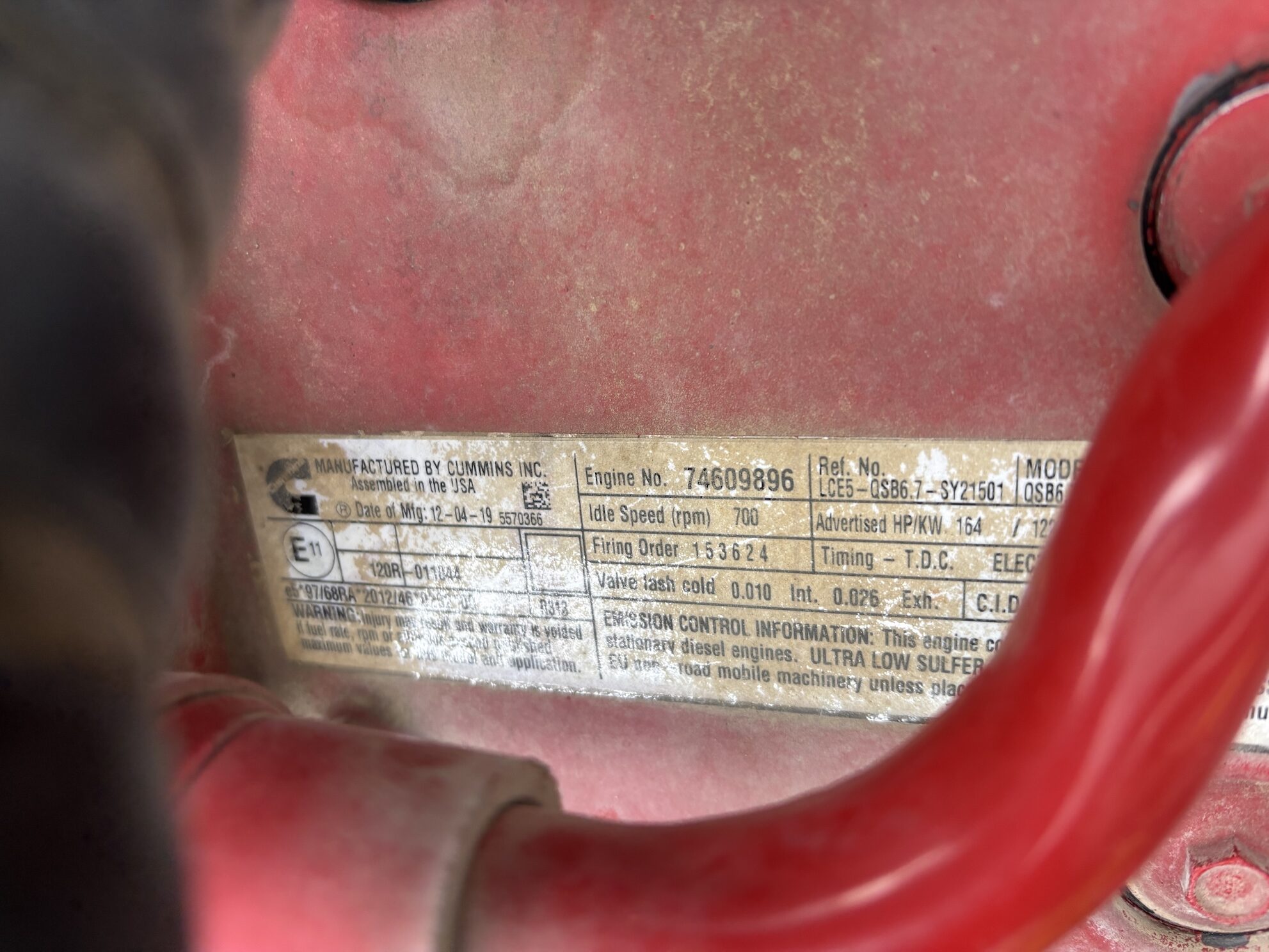 6 cylinder Cummins QSB6.7 (Stage IV) direct injection 122KW (164HP) turbo engine with only 3669 working hours on the meter.