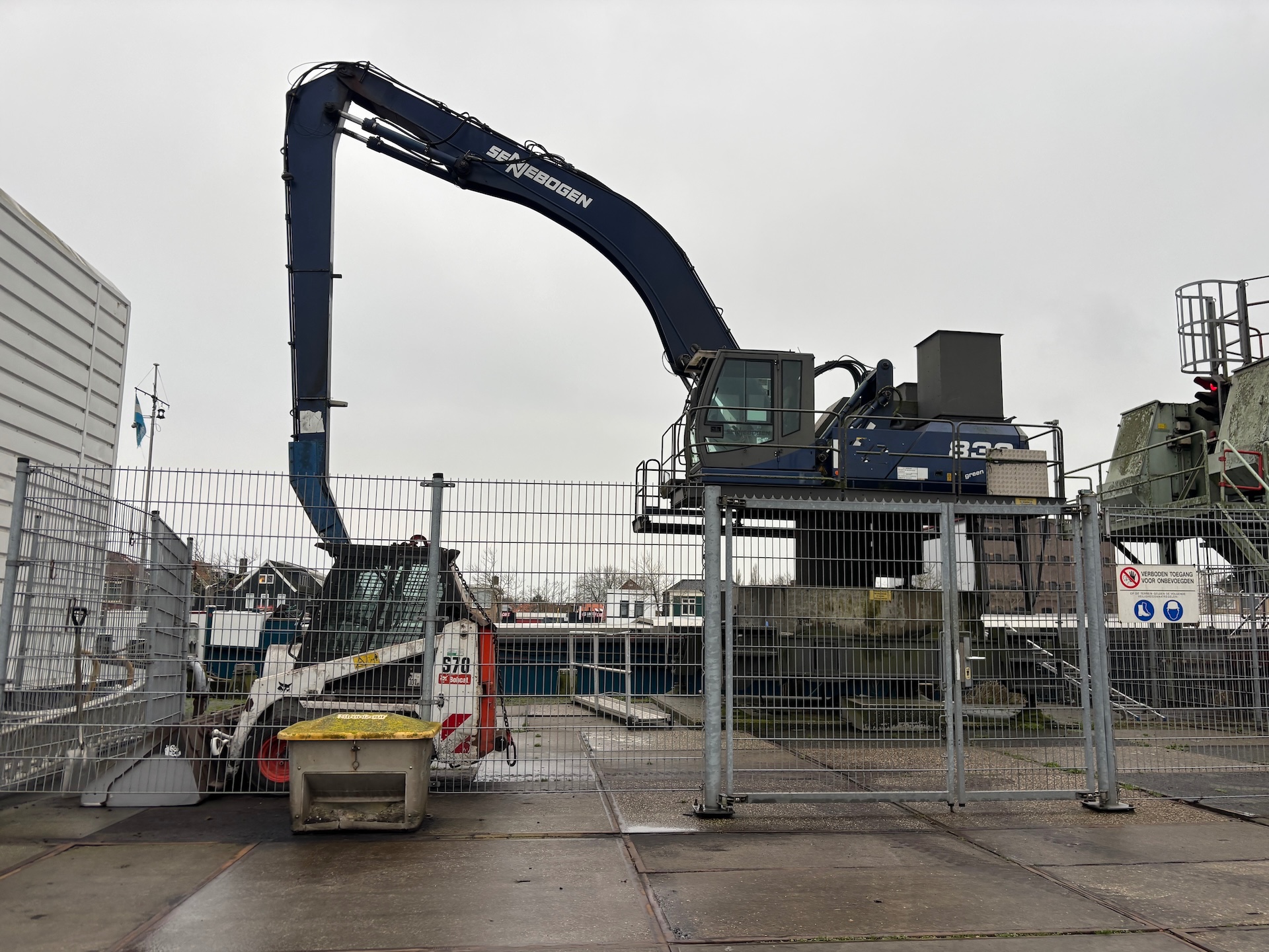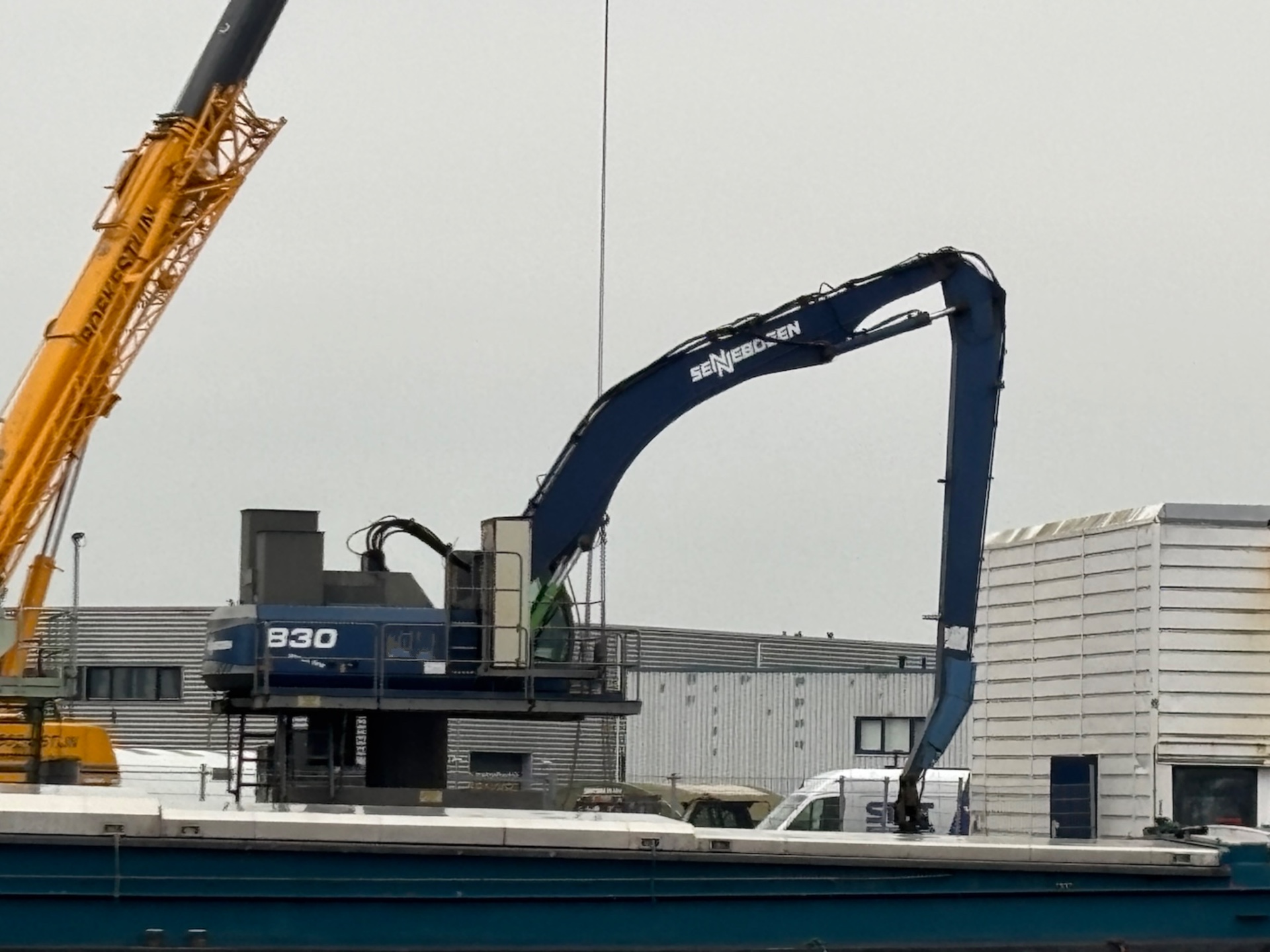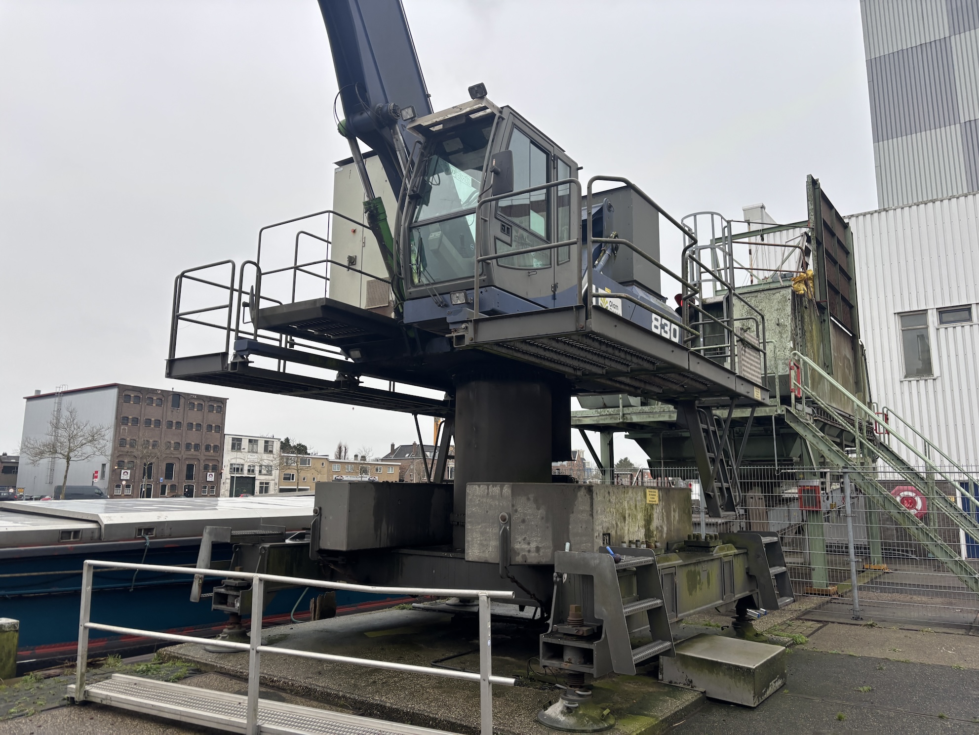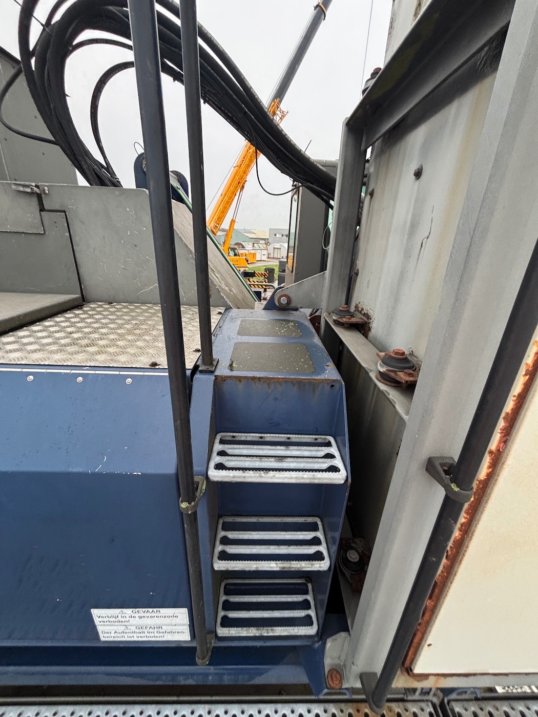 Pedestal, with 4 point outriggers including 1.6 meter pylon. Central lubrication, airo, radio, all additional books available. Catwalk around the upper carriage, Dutch machine. Grab in the picture is not included.
