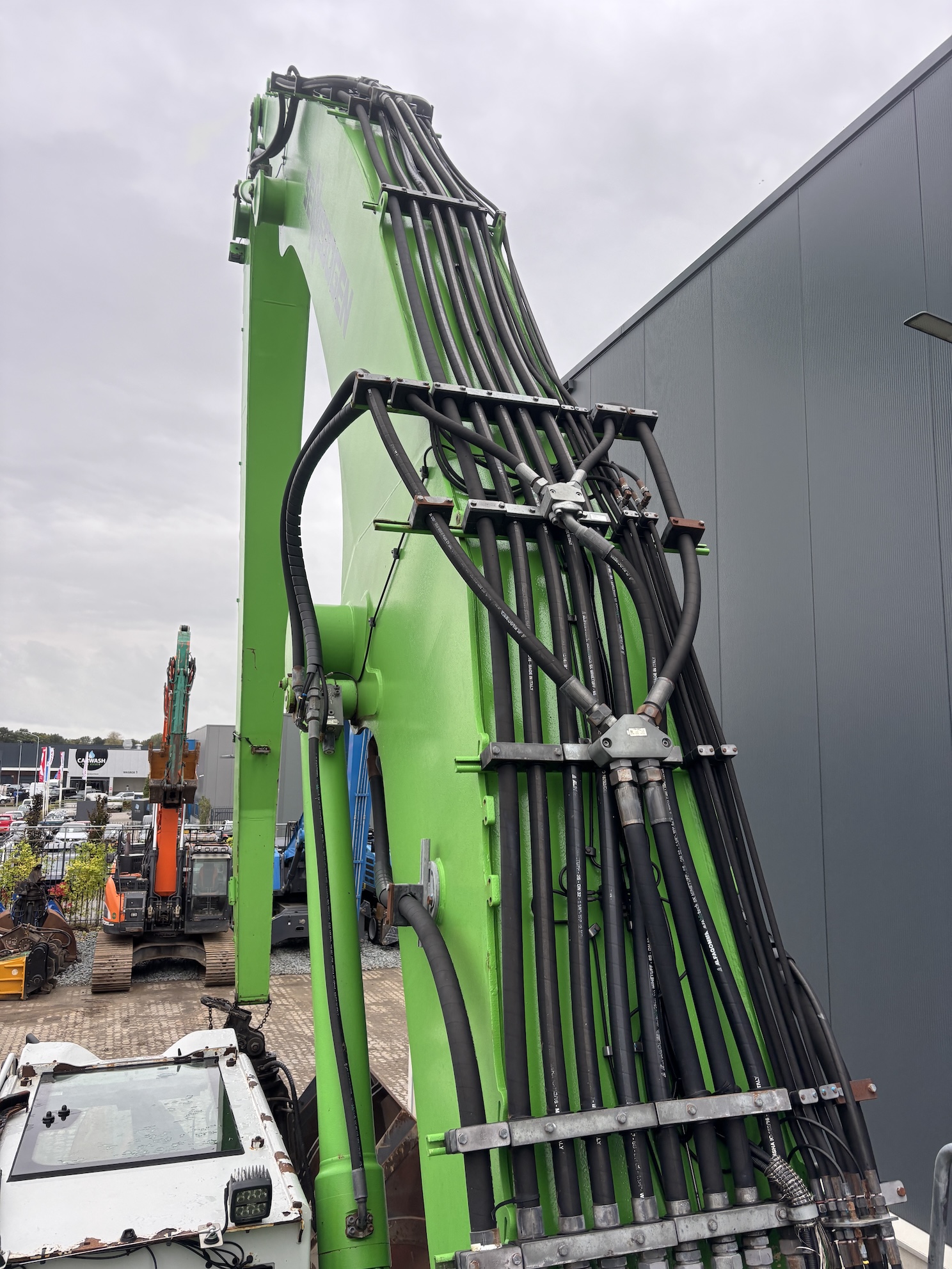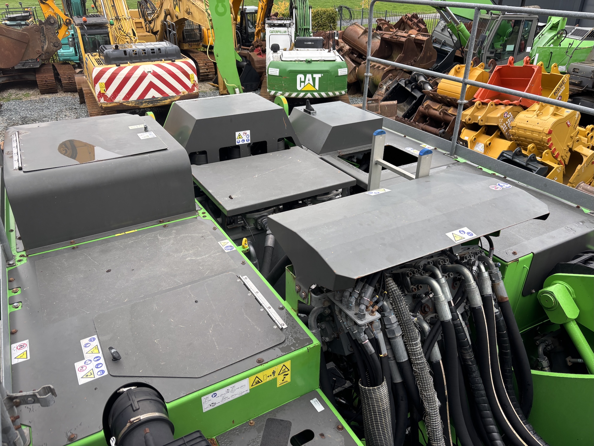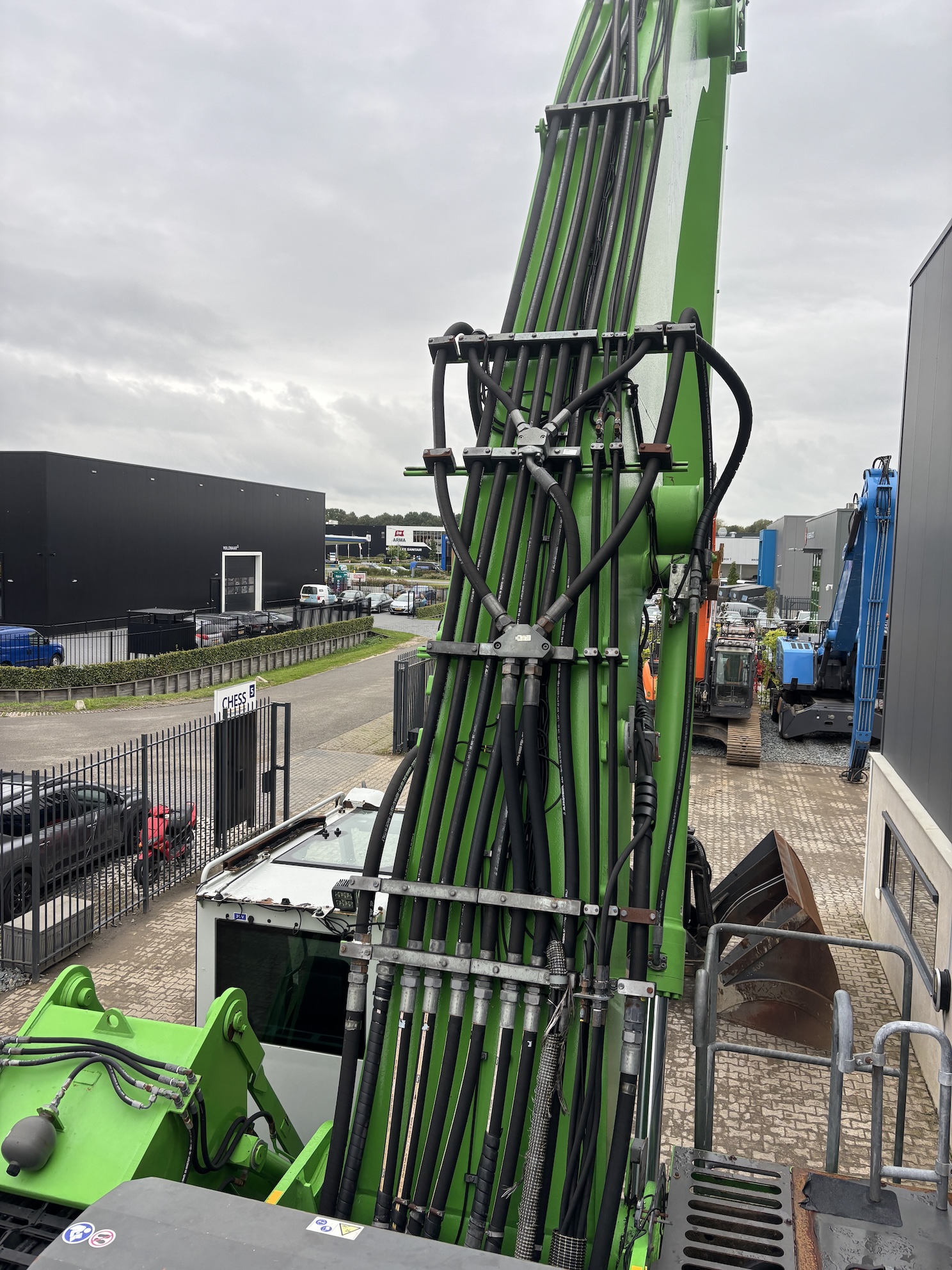 This Sennebogen 850M E from 2018 is equipped with a 6 cilinder water cooled turbo charged Cummins QSL9 (224kW) dies engine with 10089 working hours on the service meter. B20 configuration (12 meter boom and 9,5 meter stick), MP50E undercarriage, 14,2 tons counter weight, full rubber tires, camera on the stick, radio, airco, central lubrication, Dutch machine with all books and service history included