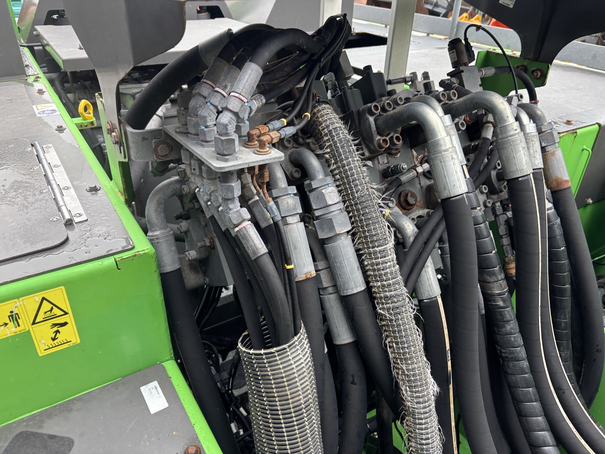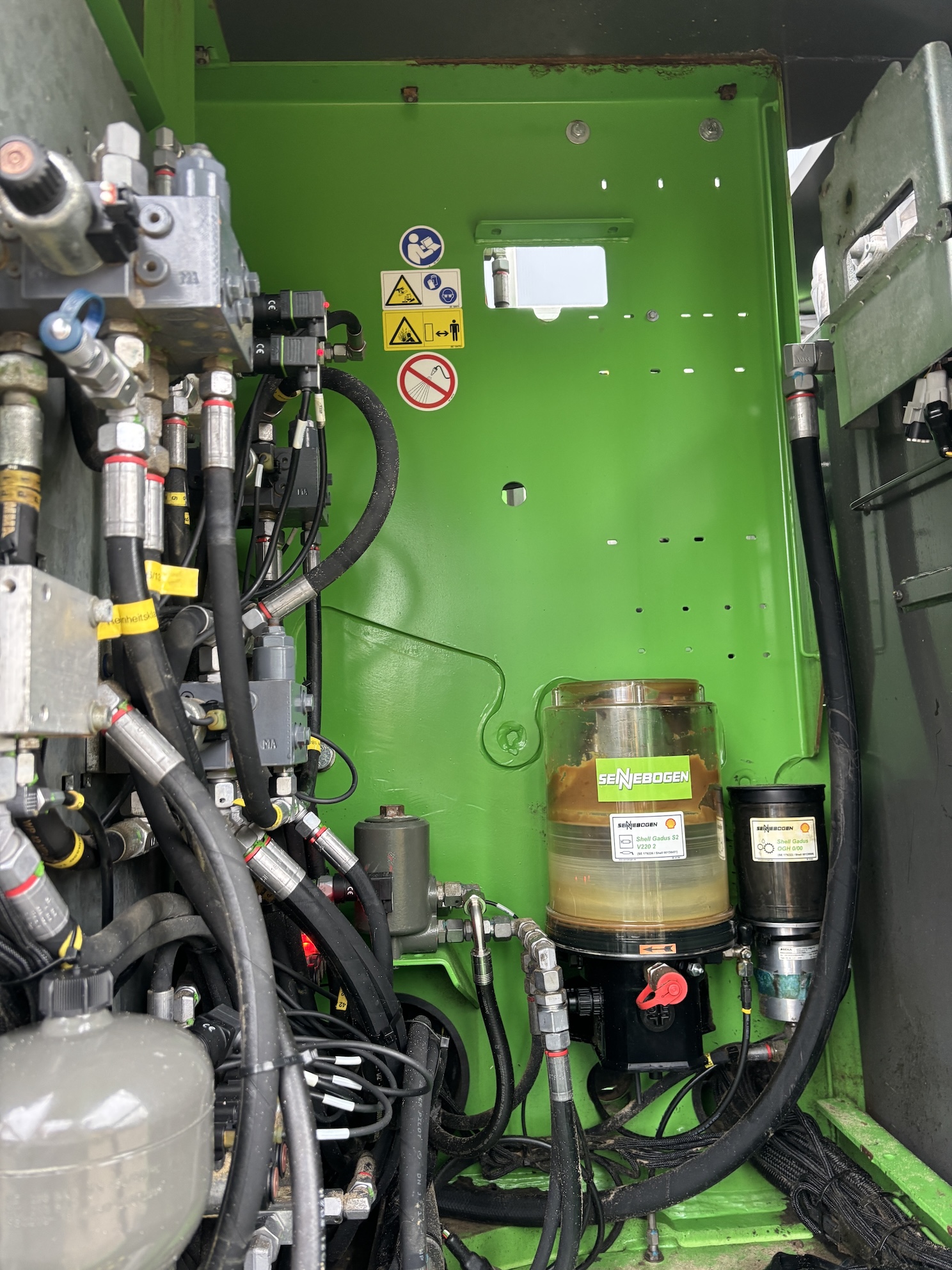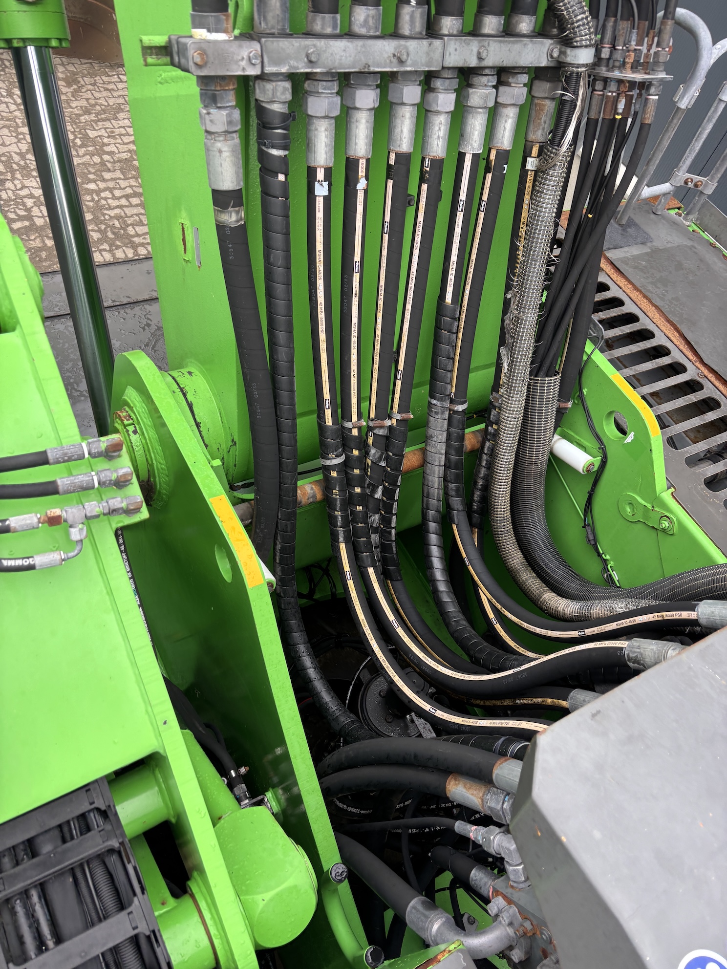 This Sennebogen 850M E from 2018 is equipped with a 6 cilinder water cooled turbo charged Cummins QSL9 (224kW) dies engine with 10089 working hours on the service meter. B20 configuration (12 meter boom and 9,5 meter stick), MP50E undercarriage, 14,2 tons counter weight, full rubber tires, camera on the stick, radio, airco, central lubrication, Dutch machine with all books and service history included