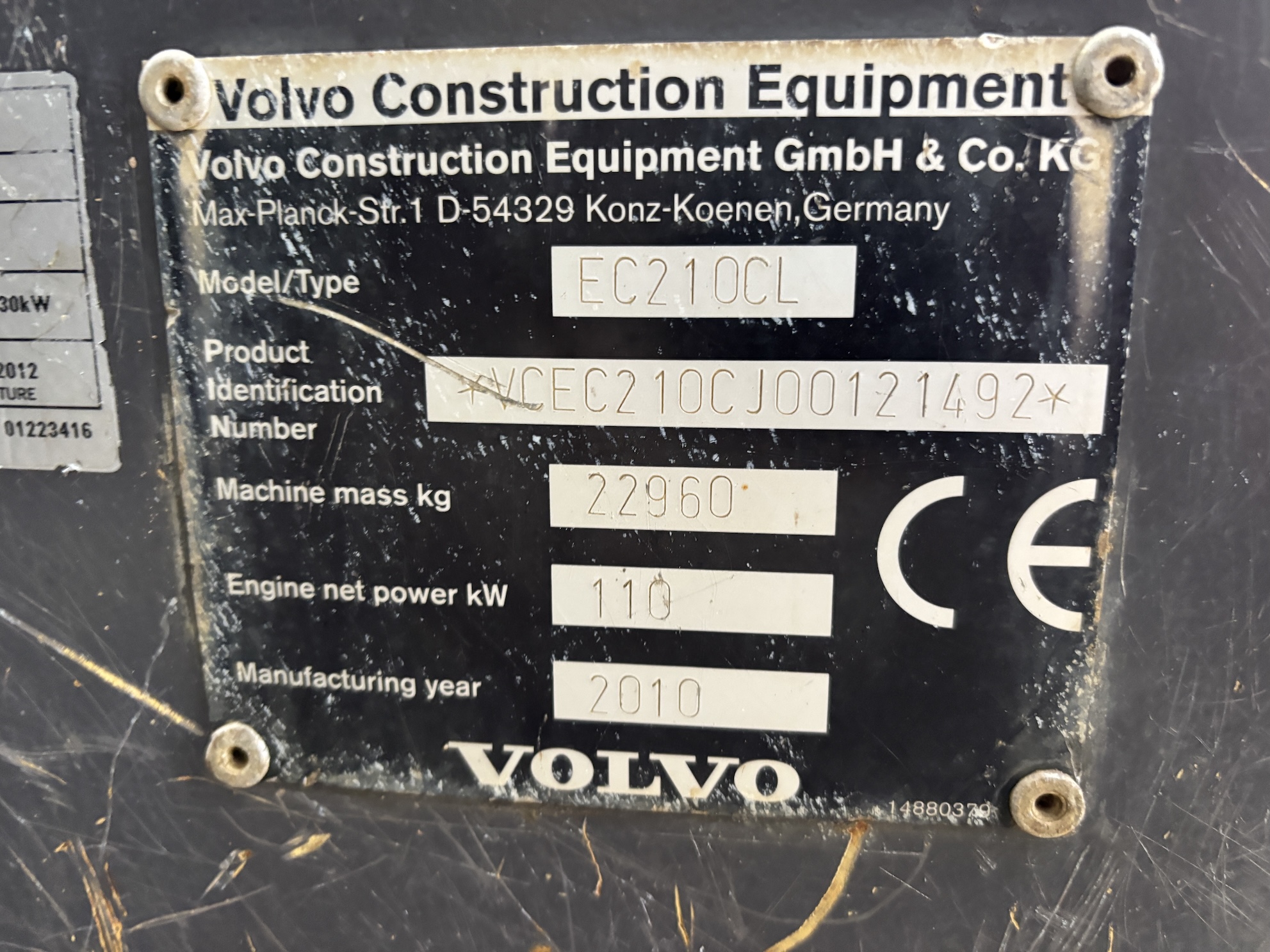 This Volvo EC210CL is equipped with a 6 cilinder water cooled turbo charged Volvo D6E EFE3 (123kW) diesel engine with 17581 working hours on the service meter. Hydraulics for hammer and rotation function, rear view camera, airco, electric diesel pump etc.