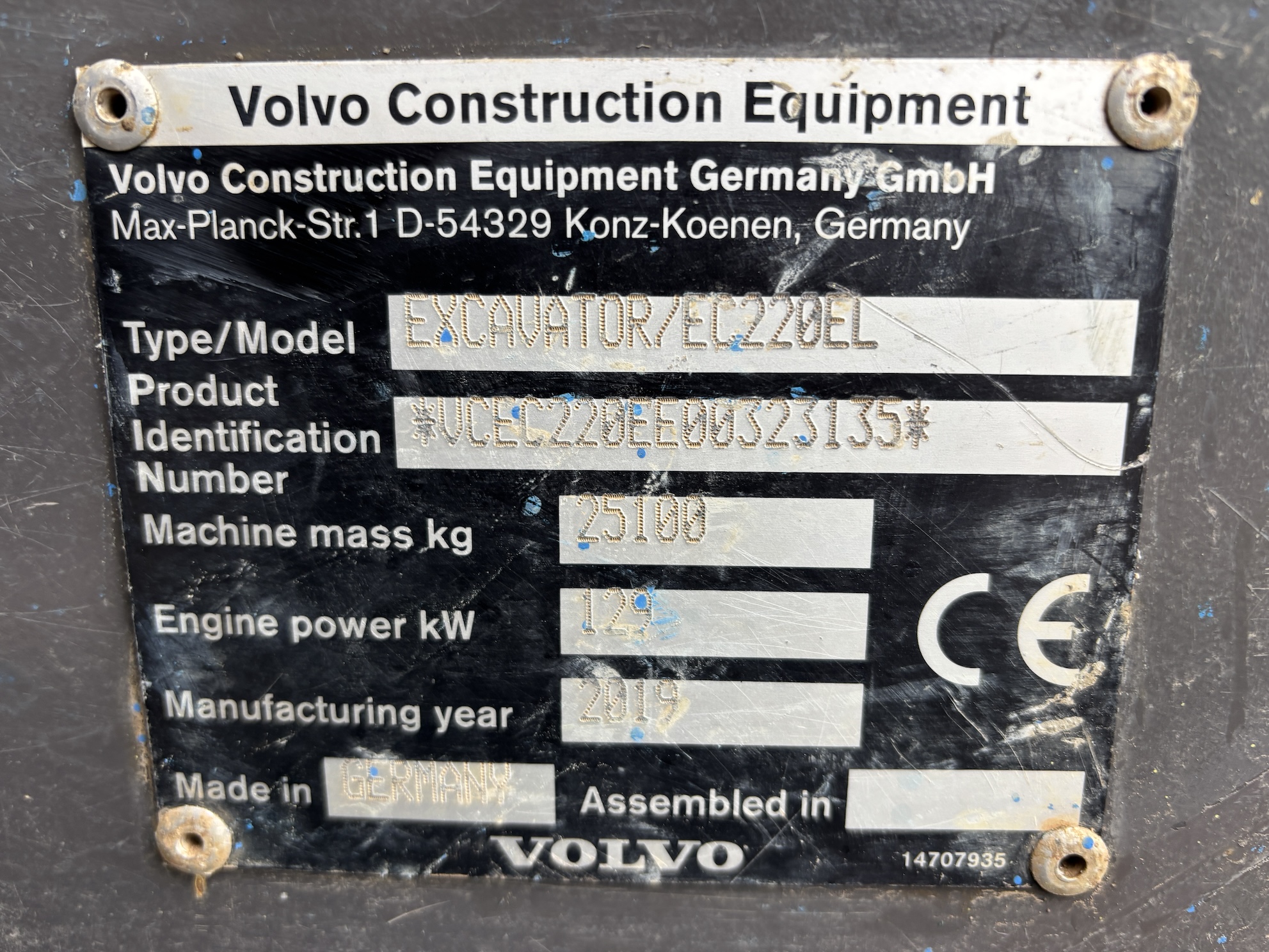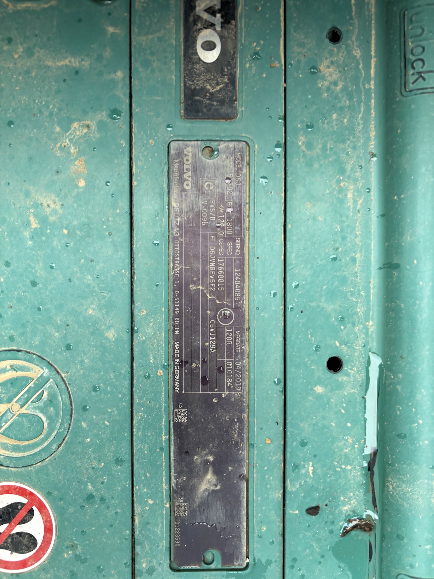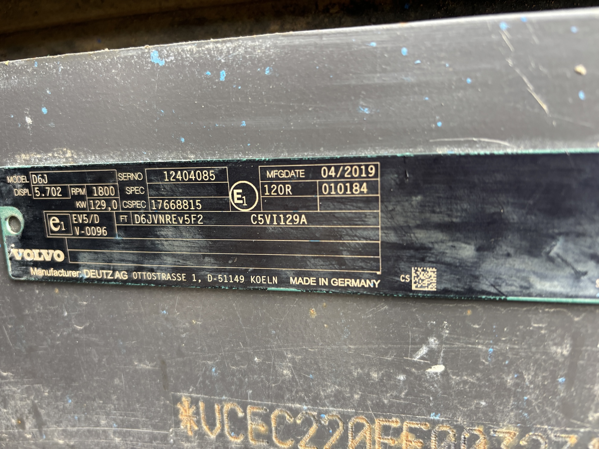 Volvo D6J 6 cylinder direct injection 129KW/173HP turbo engine (Tier 4) with about 8157 working hours on the meter.